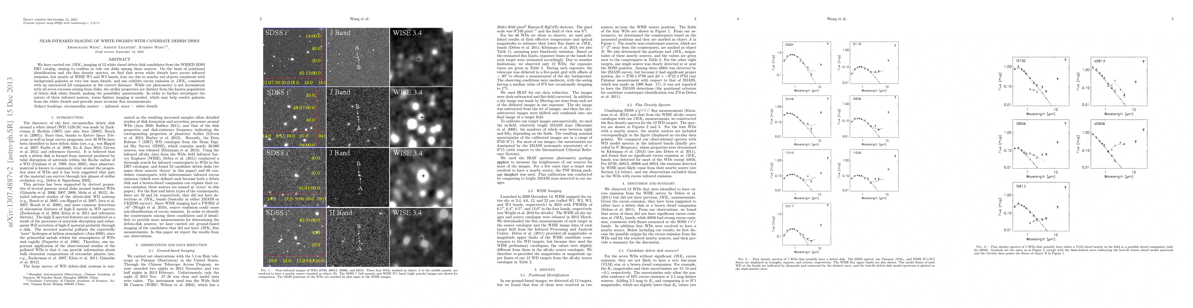 We have carried out $JHK_s$ imaging of 12 white dwarf debris disk candidates from the WIRED SDSS DR7 catalog, aiming to confirm or rule out disks among these sources. On the basis of positional identification and the flux density spectra, we find that seven white dwarfs have excess infrared emission, but mostly at WISE W1 and W2 bands, four are due to nearby red objects consistent with background galaxies or very low mass dwarfs, and one exhibits excess emission at $JHK_s$ consistent with an unresolved L0 companion at the correct distance. While our photometry is not inconsistent with all seven excesses arising from disks, the stellar properties are distinct from the known population of debris disk white dwarfs, making the possibility questionable. In order to further investigate the nature of these infrared sources, warm Spitzer imaging is needed, which may help resolve galaxies from the white dwarfs and provide more accurate flux measurements.