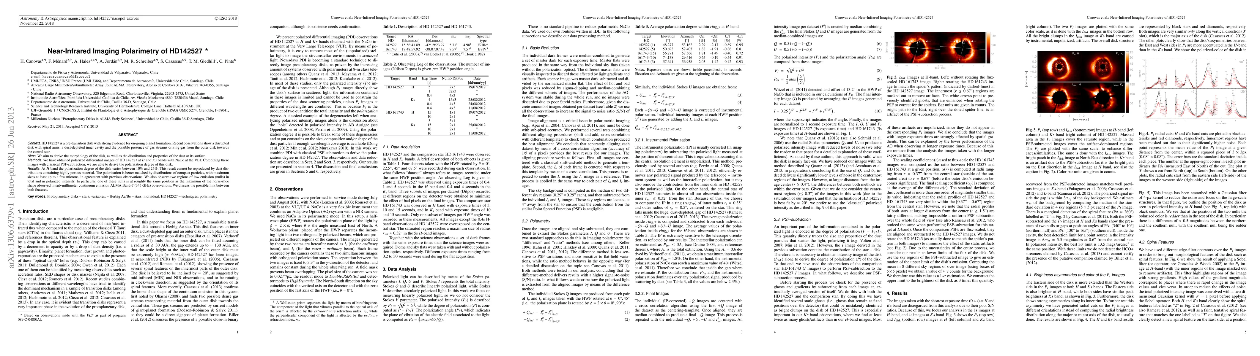 HD 142527 is a pre-transition disk with strong evidence for on-going planet formation. Recent observations show a disrupted disk with spiral arms, a dust-depleted inner cavity and the possible presence of gas streams driving gas from the outer disk towards the central star. We aim to derive the morphology of the disk, as well as the distribution and properties of the dust at its surface. We have obtained polarized differential images of HD 142527 at $H$ and $Ks$ bands with NaCo at the VLT. Combining these images with classical PSF-subtraction, we are able to derive the polarization degree of this disk. At $H$ band the polarization degree of the disk varies between 10% and 25%. This result cannot be reproduced by dust distributions containing highly porous material. The polarization is better matched by distributions of compact particles, with maximum sizes at least up to a few microns, in agreement with previous observations. We also observe two regions of low emission (nulls) in total and in polarized intensity. In particular, one of these nulls is at roughly the same position as the maximum of the horse-shoe shape observed in sub-millimeter continuum emission ALMA Band-7 (345 GHz) observations. We discuss the possible link between both features.