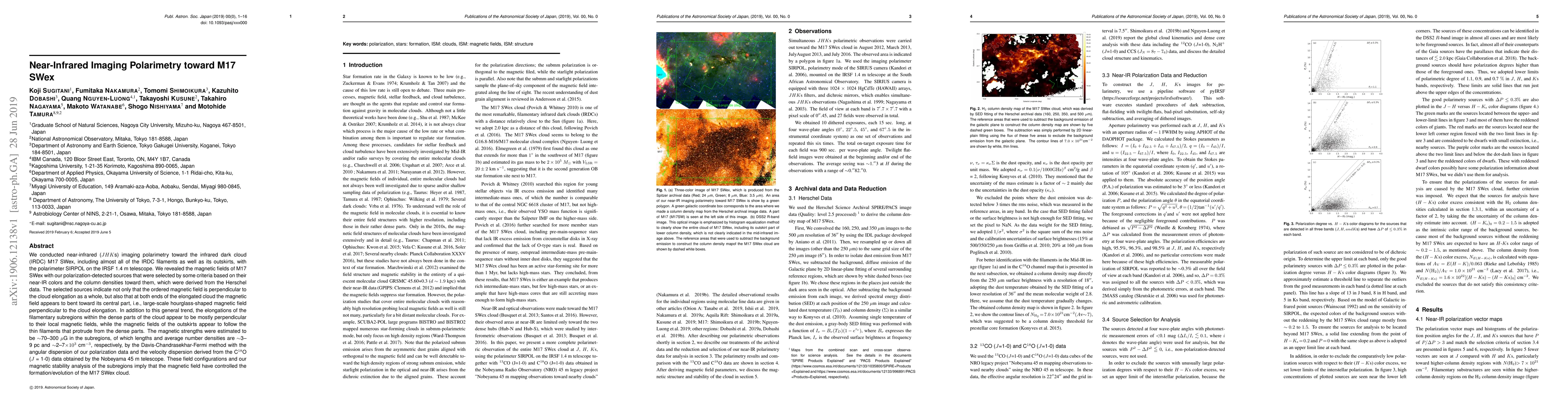 This study uses near-infrared imaging polarimetry to map magnetic fields in the M17 SWex cloud, revealing a large-scale hourglass-shaped field that controls the cloud's formation and evolution.