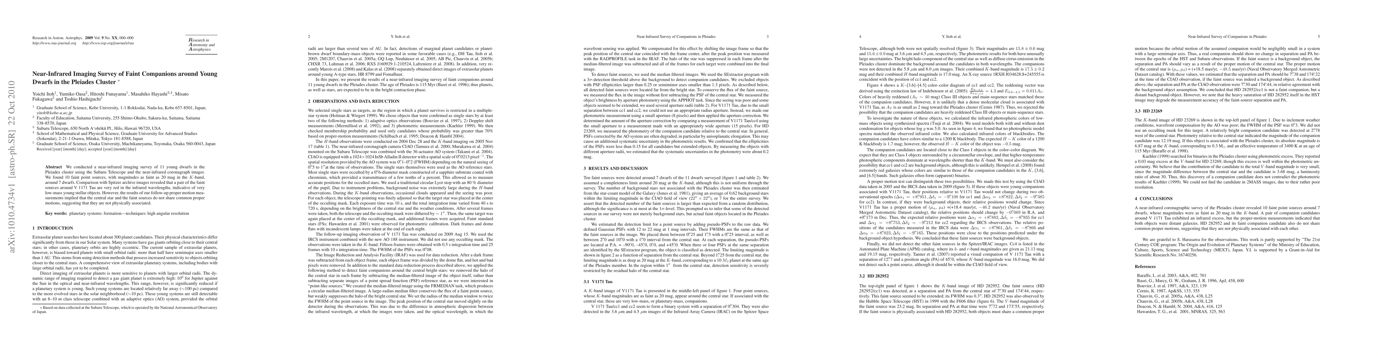 This study conducted a near-infrared imaging survey of young dwarfs in the Pleiades cluster, identifying 10 faint point sources around 7 dwarfs. While some sources appear to be very red and potentially low-mass young stellar objects, follow-up proper motion measurements suggest they are not physically associated with the central stars.