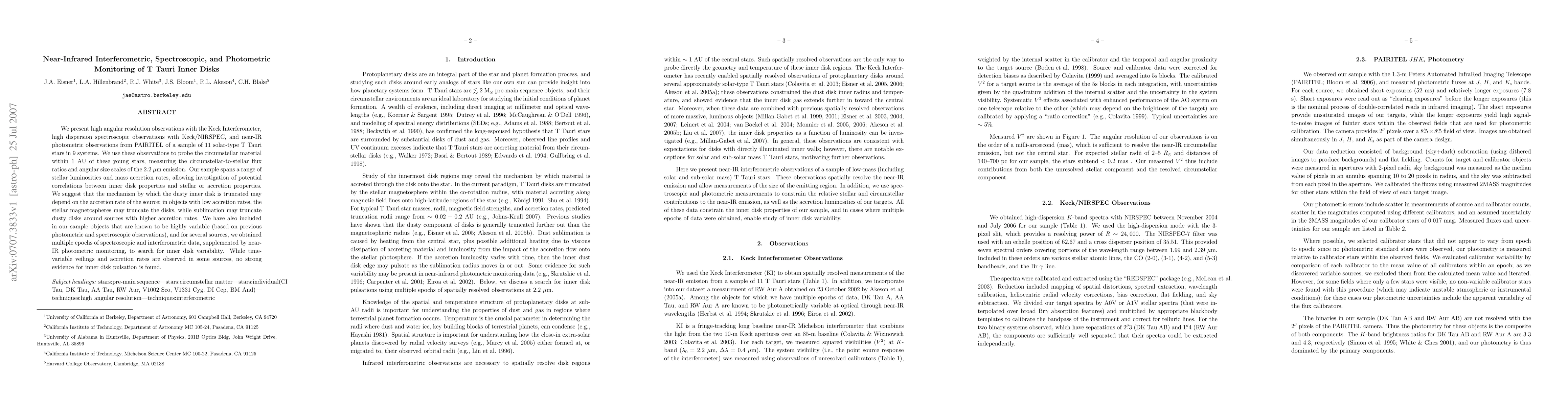This study uses high angular resolution interferometry, spectroscopy, and near-IR photometry to investigate the inner disks of 11 T Tauri stars, finding that disk truncation mechanisms may vary with accretion rates. No strong evidence for inner disk pulsation was detected despite observing variability in accretion rates.