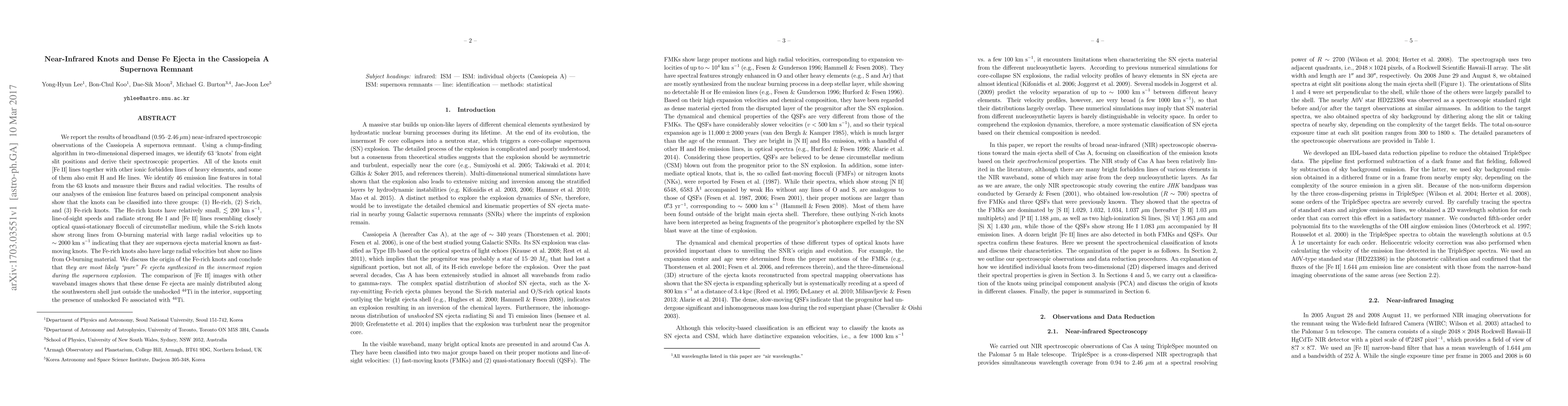 This study identifies 63 near-infrared "knots" in the Cassiopeia A supernova remnant, classifying them into He-rich, S-rich, and Fe-rich groups based on their emission lines. The Fe-rich knots, likely pure Fe ejecta from the innermost region, are primarily located along the southwestern shell, suggesting a connection to unshocked Fe near $^{44}$Ti.