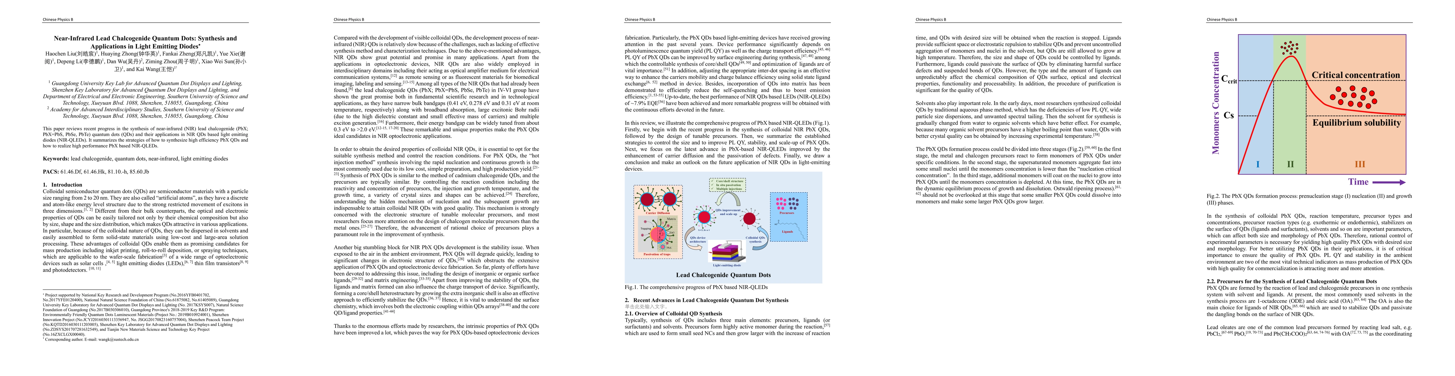 This paper reviews the synthesis of near-infrared lead chalcogenide quantum dots for light emitting diodes, highlighting strategies for high efficiency synthesis and performance enhancement.