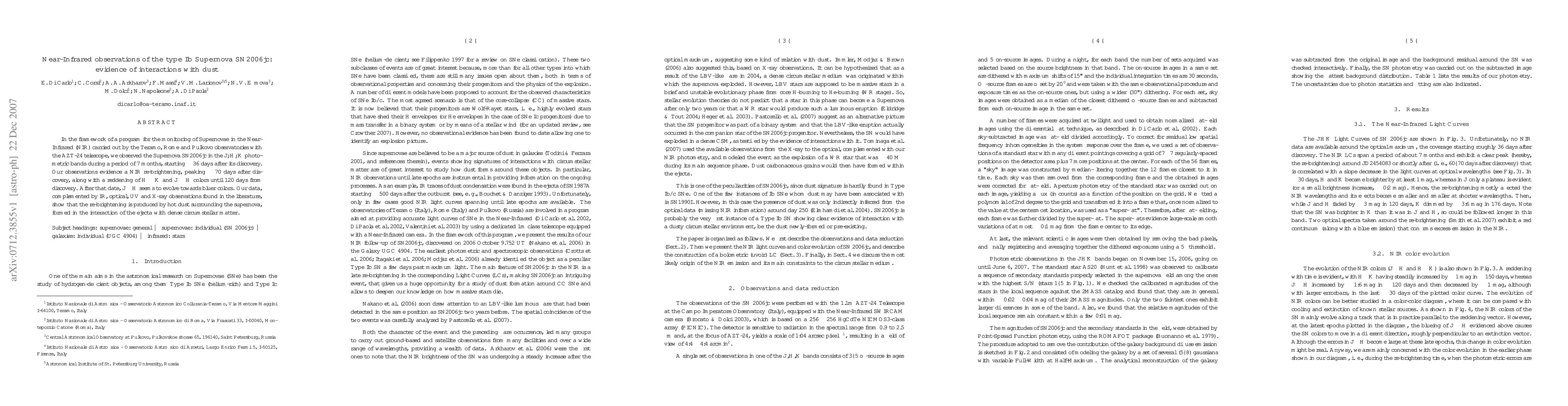 In the framework of a program for the monitoring of Supernovae in the Near-Infrared (NIR) carried out by the Teramo, Rome and Pulkovo observatories with the AZT-24 telescope, we observed the Supernova SN2006jc in the J,H,K photometric bands during a period of 7 months, starting ~36 days after its discovery. Our observations evidence a NIR re-brightening, peaking ~70 days after discovery, along with a reddening of H-K and J-H colors until 120 days from discovery. After that date, J-H seems to evolve towards bluer colors. Our data, complemented by IR, optical, UV and X-ray observations found in the literature, show that the re-brightening is produced by hot dust surrounding the supernova, formed in the interaction of the ejecta with dense circumstellar matter.