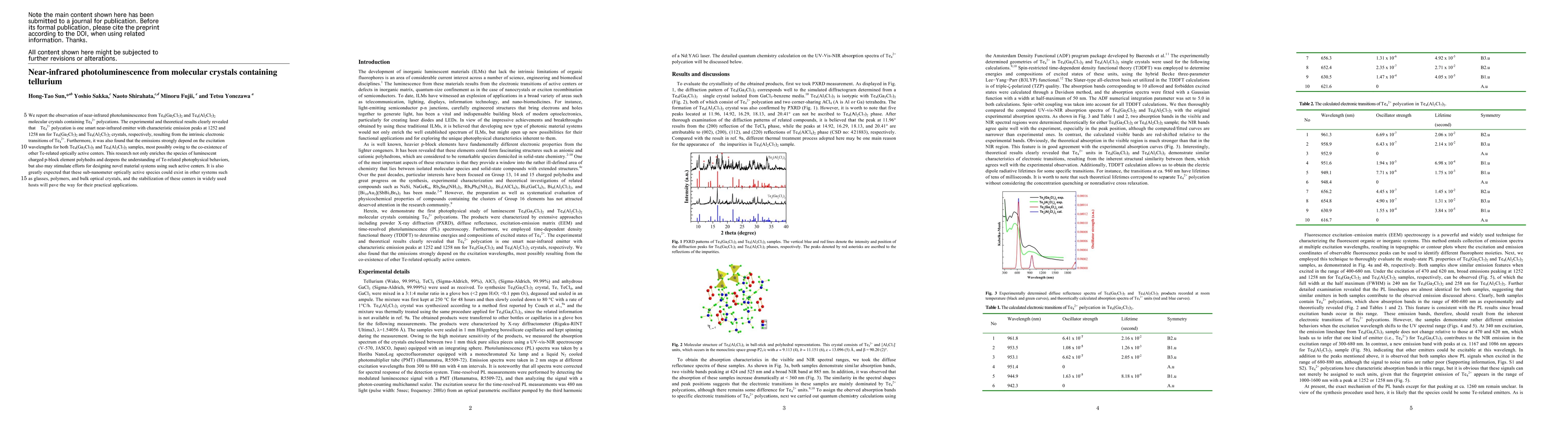 The research identifies Te4(Ga2Cl7)2 and Te4(Al2Cl7)2 crystals as new near-infrared photoluminescence emitters with emission peaks at 1252 and 1258 nm, respectively. The findings contribute to understanding tellurium-related photophysical behaviors and may lead to designing novel materials with practical applications in glasses, polymers, and bulk optical crystals.