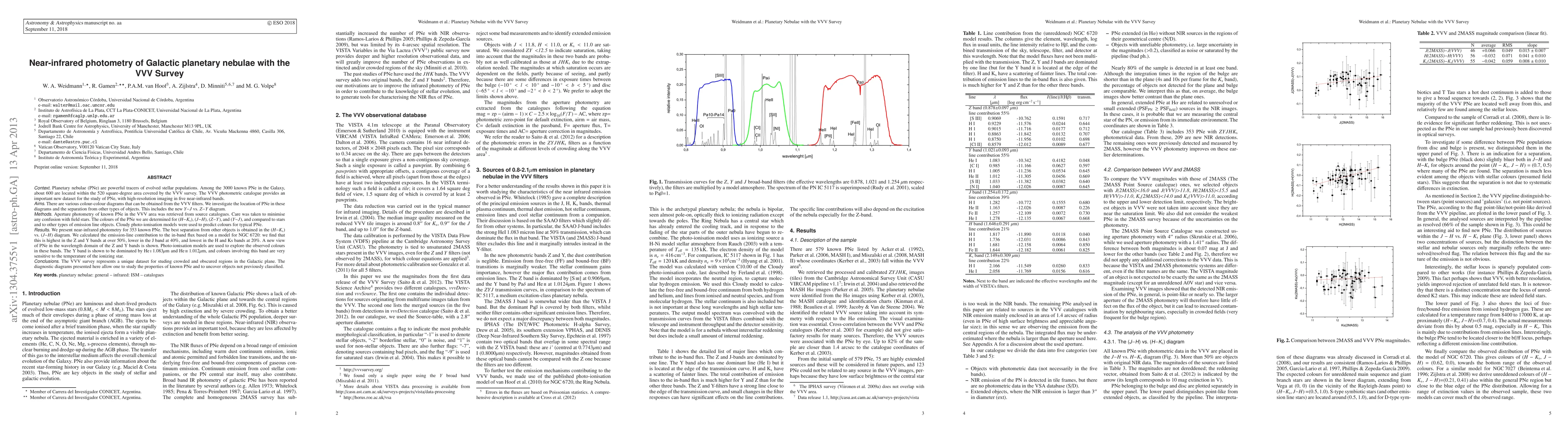 The VVV survey provides high-resolution near-infrared photometry for 353 known Galactic planetary nebulae, revealing significant emission-line contributions in the Z and Y bands. Photo-ionisation models help interpret the observed colours, particularly the Y band's sensitivity to the temperature of the ionising star.