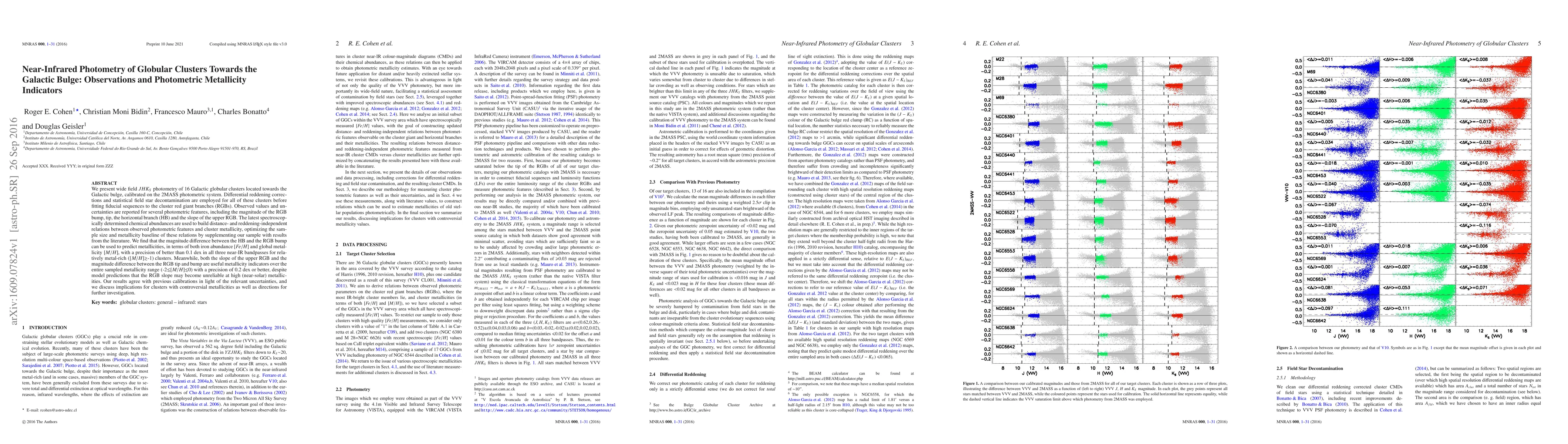 This paper presents JHKs photometry of 16 Galactic globular clusters towards the bulge, finding that the magnitude difference between the horizontal branch and the RGB bump is a precise indicator of metallicity, while the RGB slope and RGB tip-bump difference are also effective indicators over a broad metallicity range.