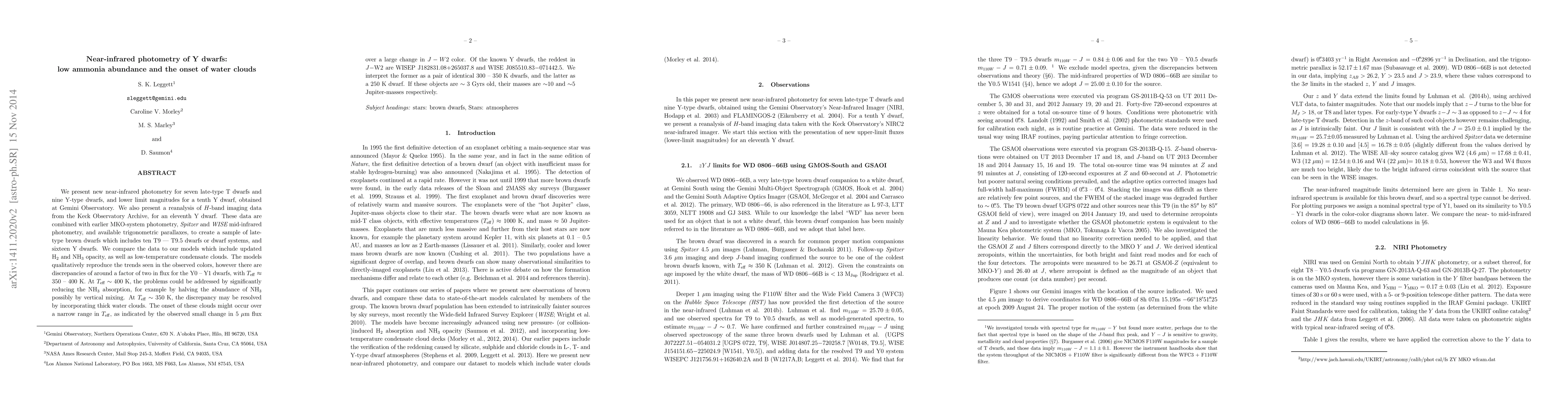 We present new near-infrared photometry for seven late-type T dwarfs and nine Y-type dwarfs, and lower limit magnitudes for a tenth Y dwarf, obtained at Gemini Observatory. We also present a reanalysis of H-band imaging data from the Keck Observatory Archive, for an eleventh Y dwarf. These data are combined with earlier MKO-system photometry, Spitzer and WISE mid-infrared photometry, and available trigonometric parallaxes, to create a sample of late-type brown dwarfs which includes ten T9-T9.5 dwarfs or dwarf systems, and sixteen Y dwarfs. We compare the data to our models which include updated H_2 and NH_3 opacity, as well as low-temperature condensate clouds. The models qualitatively reproduce the trends seen in the observed colors, however there are discrepancies of around a factor of two in flux for the Y0-Y1 dwarfs, with T_eff~350-400K. At T_eff~400K, the problems could be addressed by significantly reducing the NH_3 absorption, for example by halving the abundance of NH_3 possibly by vertical mixing. At T_eff~350K, the discrepancy may be resolved by incorporating thick water clouds. The onset of these clouds might occur over a narrow range in T_eff, as indicated by the observed small change in 5um flux over a large change in J-W2 color. Of the known Y dwarfs, the reddest in J-W2 are WISEP J182831.08+265037.8 and WISE J085510.83-071442.5. We interpret the former as a pair of identical 300-350K dwarfs, and the latter as a 250K dwarf. If these objects are ~3 Gyrs old, their masses are ~10 and ~5 Jupiter-masses respectively.