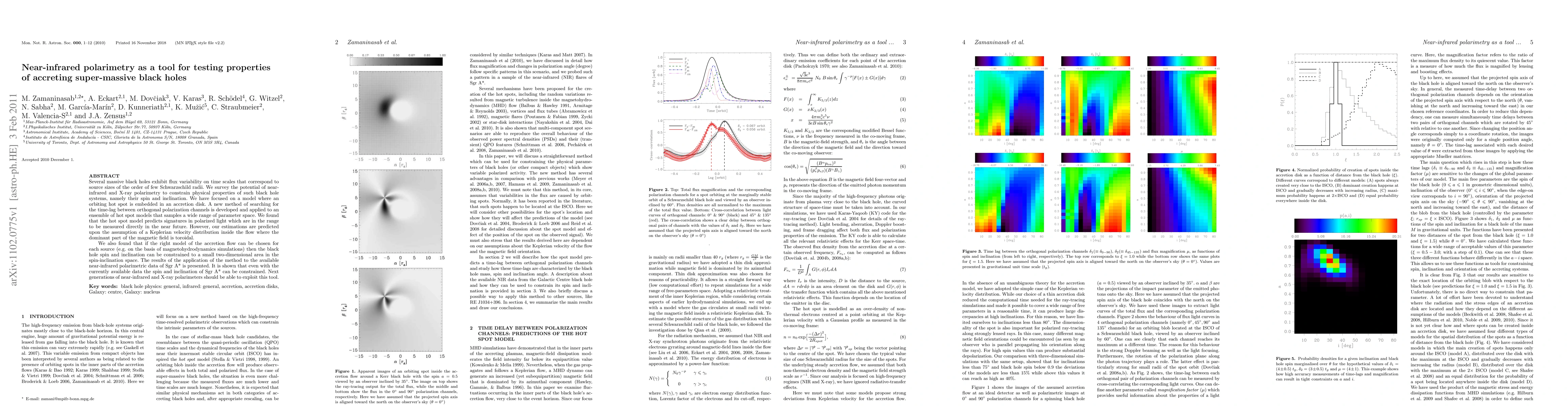 This paper explores the potential of near-infrared and X-ray polarimetry to determine the spin and inclination of accreting supermassive black holes, focusing on models with orbiting hot spots in accretion disks. The study develops a new method to detect time-lags in polarization channels, predicting measurable signatures in polarized light that could be detected in the near future.