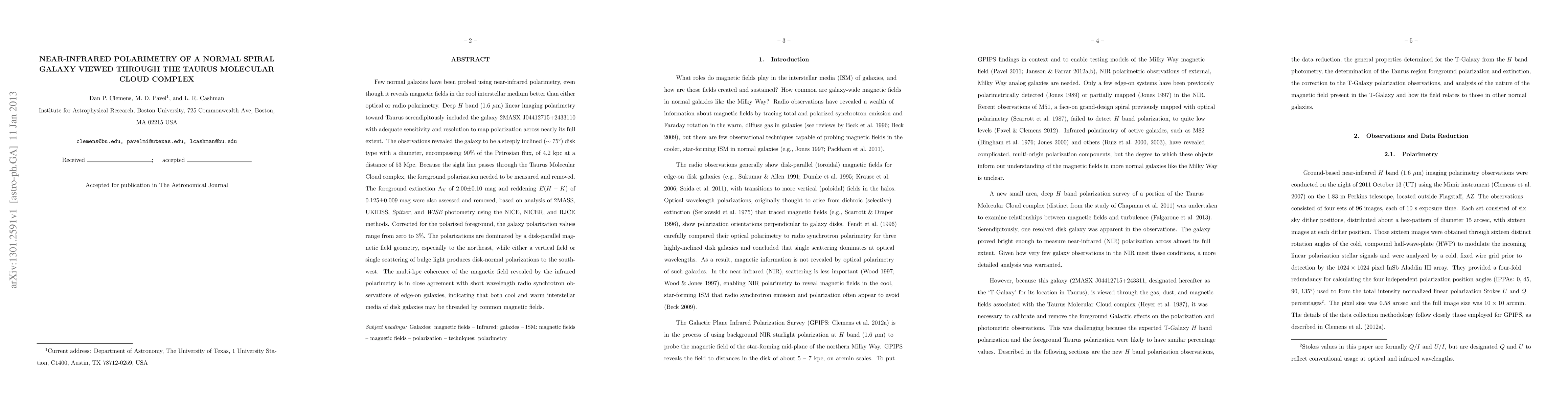Few normal galaxies have been probed using near-infrared polarimetry, even though it reveals magnetic fields in the cool interstellar medium better than either optical or radio polarimetry. Deep H-band (1.6um) linear imaging polarimetry toward Taurus serendipitously included the galaxy 2MASX J04412715+2433110 with adequate sensitivity and resolution to map polarization across nearly its full extent. The observations revealed the galaxy to be a steeply inclined (~75 deg) disk type with a diameter, encompassing 90% of the Petrosian flux, of 4.2 kpc at a distance of 53 Mpc. Because the sight line passes through the Taurus Molecular Cloud complex, the foreground polarization needed to be measured and removed. The foreground extinction Av of 2.00+/-0.10 mag and reddening E(H-K) of 0.125 +/- 0.009 mag were also assessed and removed, based on analysis of 2MASS, UKIDSS, Spitzer, and WISE photometry using the NICE, NICER, and RJCE methods. Corrected for the polarized foreground, the galaxy polarization values range from zero to 3%. The polarizations are dominated by a disk-parallel magnetic field geometry, especially to the northeast, while either a vertical field or single scattering of bulge light produces disk-normal polarizations to the southwest. The multi-kpc coherence of the magnetic field revealed by the infrared polarimetry is in close agreement with short wavelength radio synchrotron observations of edge-on galaxies, indicating that both cool and warm interstellar media of disk galaxies may be threaded by common magnetic fields.