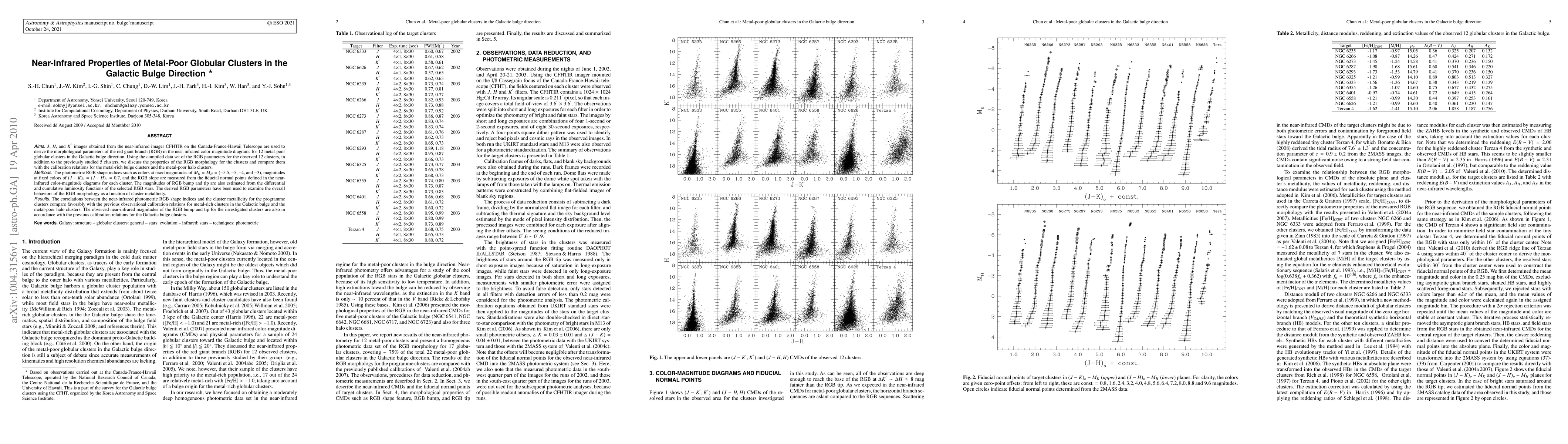 This research investigates the near-infrared properties of 12 metal-poor globular clusters in the Galactic bulge using CFHTIR images. It derives morphological parameters of the red giant branch (RGB) and finds that the RGB morphology correlates well with previous calibration relations for metal-rich and metal-poor clusters in different galactic regions.