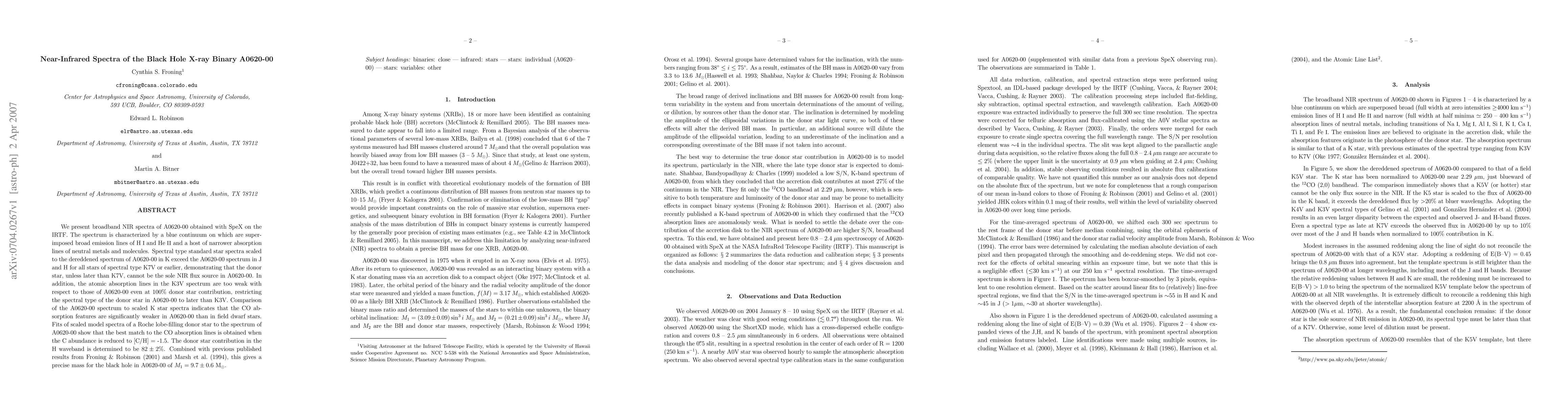 Researchers analyzed infrared spectra of black hole X-ray binary A0620-00, finding that a donor star's contribution in the H waveband is 82% and that the black hole's mass is 9.7 solar masses with an uncertainty of 0.6.