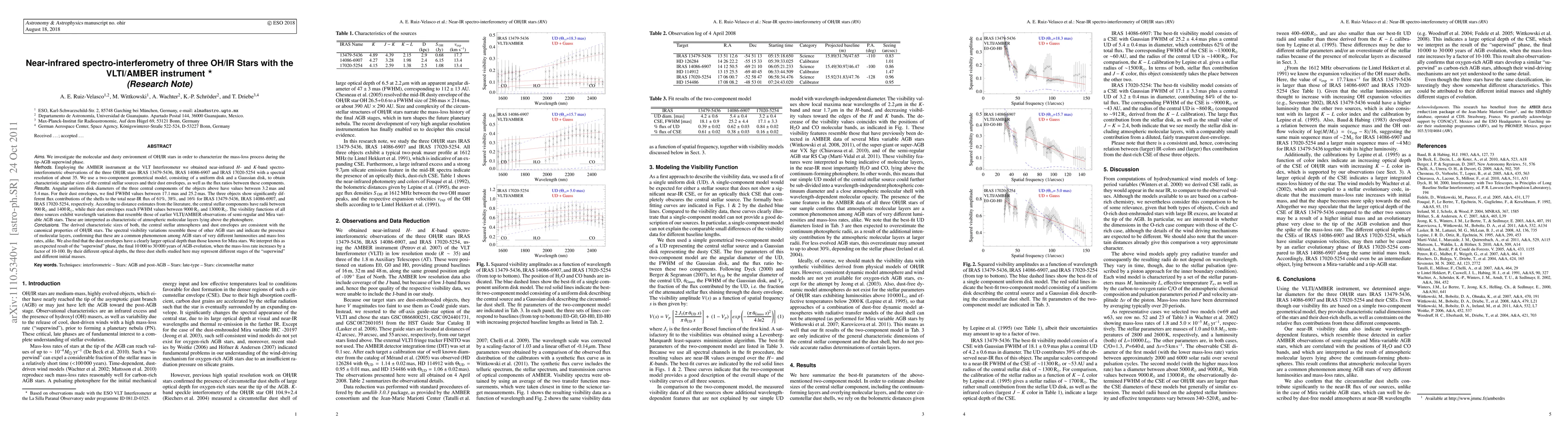 Researchers used VLTI/AMBER instrument to study three OH/IR stars, finding larger dust envelopes with higher optical depth than known for Mira stars, suggesting a 'superwind' phase during AGB evolution.