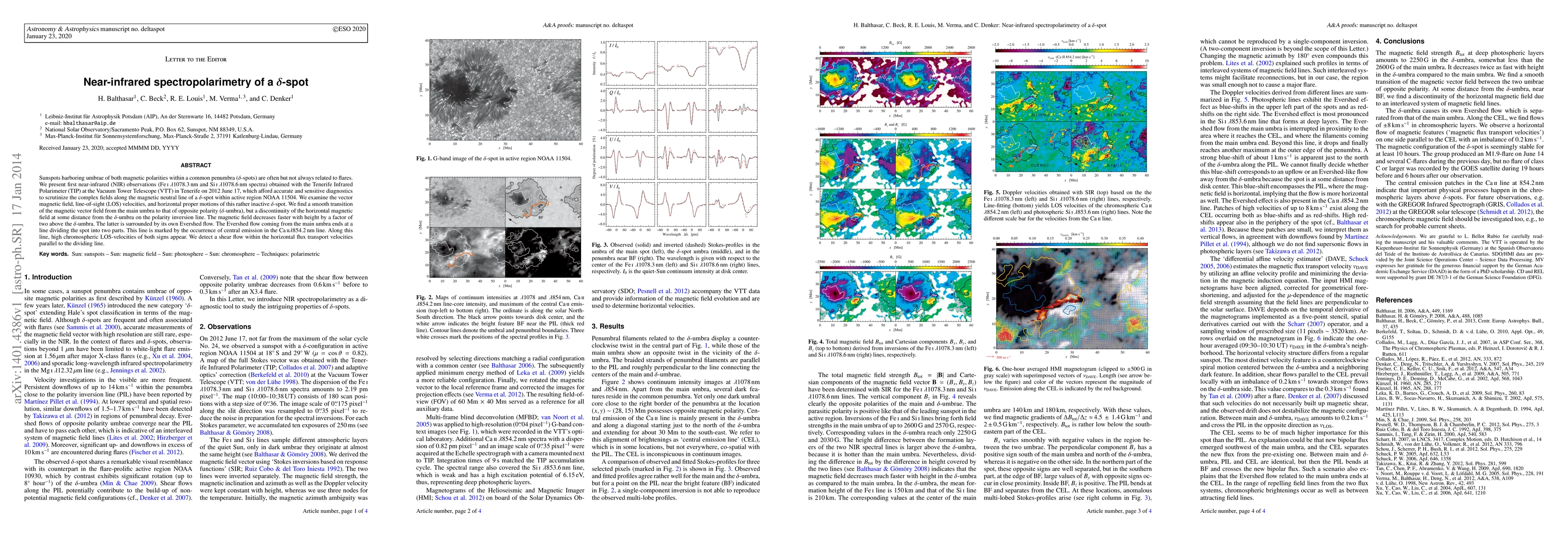 This study presents near-infrared spectropolarimetry of a delta-spot, revealing a smooth transition of the magnetic vector field from the main umbra to the opposite polarity delta-umbra, with a discontinuity in the horizontal magnetic field at the polarity inversion line. The delta-umbra exhibits its own Evershed flow, and high chromospheric line-of-sight velocities are observed along the dividing line between the two umbrae.