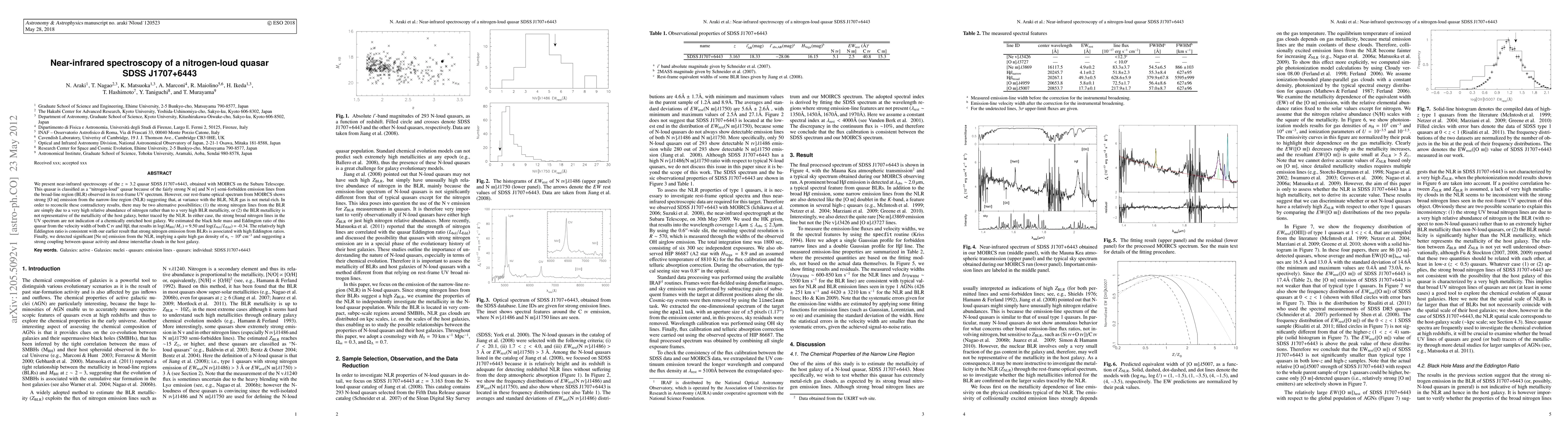 We present near-infrared spectroscopy of the z=3.2 quasar SDSS J1707+6443, obtained with MOIRCS on the Subaru Telescope. This quasar is classified as a "nitrogen-loud" quasar because of the fairly strong NIII] and NIV] semi-forbidden emission lines from the broad-line region (BLR) observed in its rest-frame UV spectrum. However, our rest-frame optical spectrum from MOIRCS shows strong [OIII] emission from the narrow-line region (NLR) suggesting that, at variance with the BLR, NLR gas is not metal-rich. In order to reconcile these contradictory results, there may be two alternative possibilities; (1) the strong nitrogen lines from the BLR are simply due to a very high relative abundance of nitrogen rather than to a very high BLR metallicity, or (2) the BLR metallicity is not representative of the metallicity of the host galaxy, better traced by the NLR. In either case, the strong broad nitrogen lines in the UV spectrum are not indication of a chemically enriched host galaxy. We estimated the black hole mass and Eddington ratio of this quasar from the velocity width of both CIV and H_beta, that results in log(M_BH/M_sun) = 9.50 and log(L_bol/L_Edd) = -0.34. The relatively high Eddington ratio is consistent with our earlier result that strong nitrogen emission from BLRs is associated with high Eddington ratios. Finally, we detected significant [NeIII] emission from the NLR, implying a quite high gas density of n~10^6 cm^-3 and suggesting a strong coupling between quasar activity and dense interstellar clouds in the host galaxy.