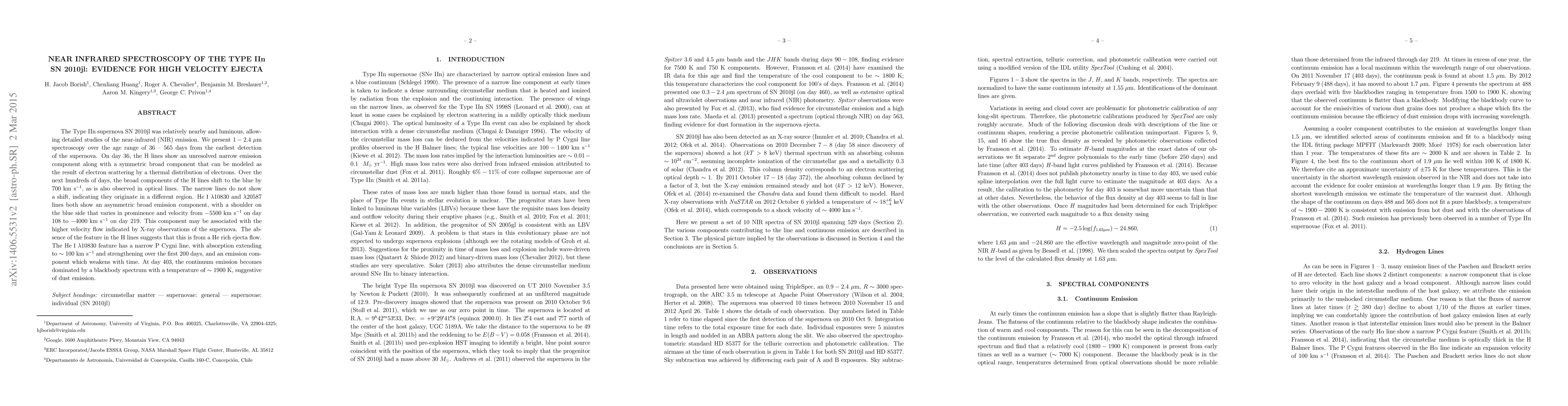 The Type IIn supernova SN 2010jl was relatively nearby and luminous, allowing detailed studies of the near-infrared (NIR) emission. We present 1 - 2.4 micron spectroscopy over the age range of 36 - 565 days from the earliest detection of the supernova. On day 36, the H lines show an unresolved narrow emission component along with a symmetric broad component that can be modeled as the result of electron scattering by a thermal distribution of electrons. Over the next hundreds of days, the broad components of the H lines shift to the blue by 700 km/s, as is also observed in optical lines. The narrow lines do not show a shift, indicating they originate in a different region. He I 1.0830 and 2.0587 micron lines both show an asymmetric broad emission component, with a shoulder on the blue side that varies in prominence and velocity from -5500 km/s on day 108 to -4000 km/s on day 219. This component may be associated with the higher velocity flow indicated by X-ray observations of the supernova. The absence of the feature in the H lines suggests that this is from a He rich ejecta flow. The He I 1.0830 micron feature has a narrow P Cygni line, with absorption extending to ~100 km/s and strengthening over the first 200 days, and an emission component which weakens with time. At day 403, the continuum emission becomes dominated by a blackbody spectrum with a temperature of ~1900 K, suggestive of dust emission.