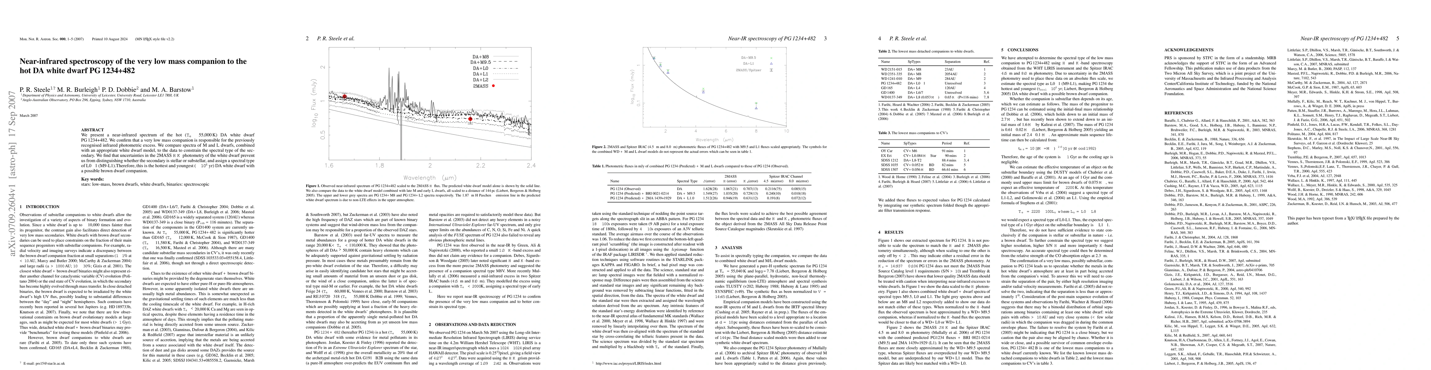 This paper presents a near-infrared spectrum of the hot DA white dwarf PG1234+482, confirming a very low mass companion causing infrared excess. The spectral type of the secondary is constrained as L0±1 (M9-L1), but uncertainties in 2MASS HK photometry prevent clear classification as either stellar or substellar.