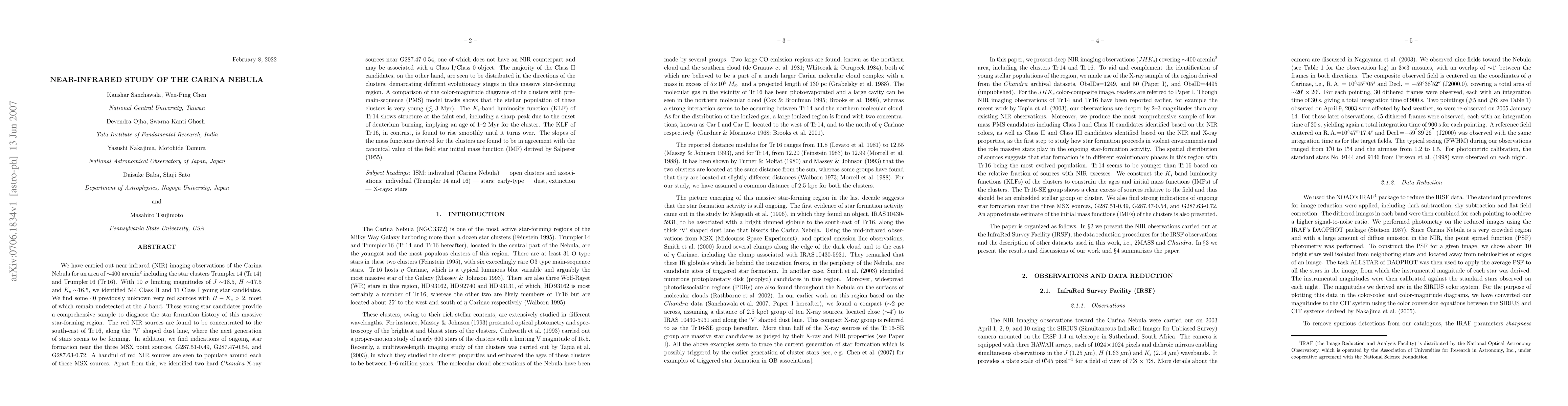 This study presents near-infrared imaging of the Carina Nebula, identifying 544 young Class II stars and 11 Class I stars, alongside 40 previously unknown very red sources concentrated in the region forming new stars. The findings suggest ongoing star formation near specific MSX sources and indicate the young age of the stellar population in the clusters Trumpler 14 and 16, with Tr 14 showing an age of 1-2 Myr.