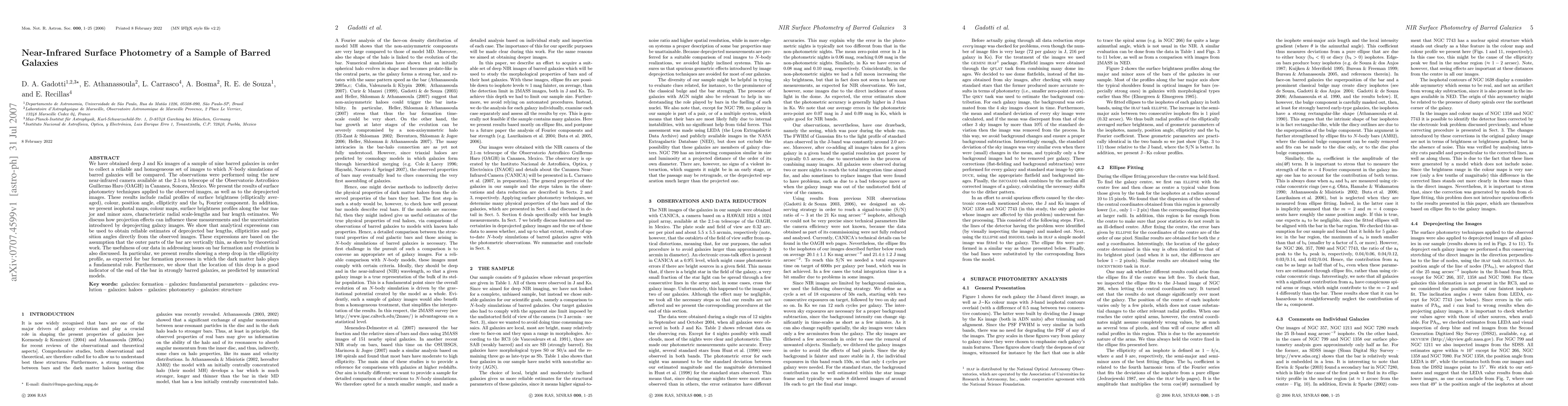 This study presents near-infrared surface photometry of nine barred galaxies, using deep J and Ks images from the Observatorio Astrofisico Guillermo Haro. The analysis includes radial profiles and isophotal maps, revealing insights into bar formation and the influence of dark matter, with implications for bar evolution models.