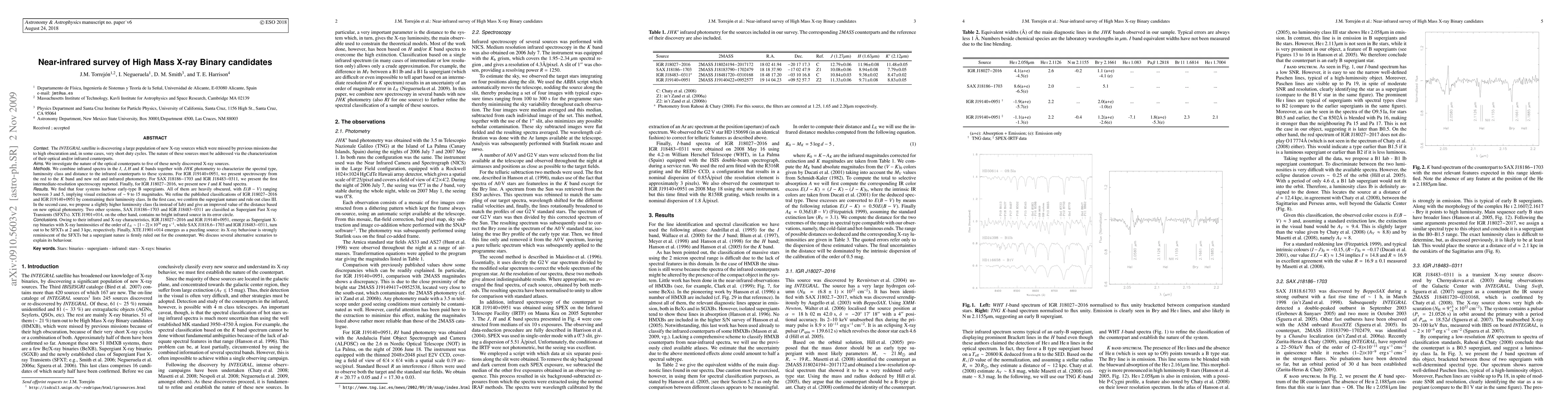 We combine infrared spectra in the I, J, H and K bands together with JHK photometry to characterize the spectral type, luminosity class and distance to the infrared counterparts to five INTEGRAL sources. For SAX J18186-1703 and IGR J18483-0311, we present the first intermediate-resolution spectroscopy reported. We find that four systems harbour early-type B supergiants. All of them are heavily obscured, with E(B-V) ranging between 3 and 5, implying visual extinctions of ~ 9 to 15 magnitudes. We refine the published classifications of IGR J18027-2016 and IGR J19140+0951 by constraining their luminosity class. In the first case, we confirm the supergiant nature and rule out class III. In the second case, we propose a slightly higher luminosity class (Ia instead of Iab) and give an improved value of the distance based on new optical photometry. Owing to their infrared and X-ray characteristics, IGR J18027-2016 and IGR J19140+0951, emerge as Supergiant X-ray binaries with X-ray luminosities of the order of Lx ~ [1-2] x 10^{36} erg/s, while SAX J1818.6-1703 and IGR J18483-0311, turn out to be Supergiant Fast X-ray Transients at 2 and 3 kpc, respectively. Finally, XTE J1901+014 emerges as a puzzling source: its X-ray behaviour is strongly reminiscent of the SFXTs but a supergiant nature is firmly ruled out for the counterpart. We discuss several alternative scenarios to explain its behaviour.