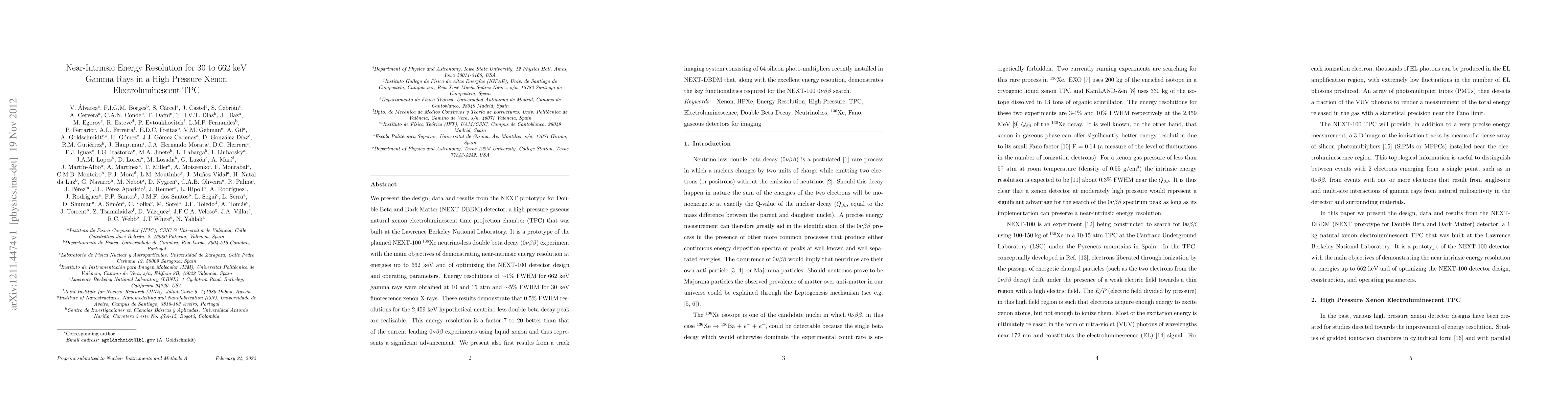We present the design, data and results from the NEXT prototype for Double Beta and Dark Matter (NEXT-DBDM) detector, a high-pressure gaseous natural xenon electroluminescent time projection chamber (TPC) that was built at the Lawrence Berkeley National Laboratory. It is a prototype of the planned NEXT-100 $^{136}$Xe neutrino-less double beta decay ($0\nu\beta\beta$) experiment with the main objectives of demonstrating near-intrinsic energy resolution at energies up to 662 keV and of optimizing the NEXT-100 detector design and operating parameters. Energy resolutions of $\sim$1% FWHM for 662 keV gamma rays were obtained at 10 and 15 atm and $\sim$5% FWHM for 30 keV fluorescence xenon X-rays. These results demonstrate that 0.5% FWHM resolutions for the 2,459 keV hypothetical neutrino-less double beta decay peak are realizable. This energy resolution is a factor 7 to 20 better than that of the current leading $0\nu\beta\beta$ experiments using liquid xenon and thus represents a significant advancement. We present also first results from a track imaging system consisting of 64 silicon photo-multipliers recently installed in NEXT-DBDM that, along with the excellent energy resolution, demonstrates the key functionalities required for the NEXT-100 $0\nu\beta\beta$ search.