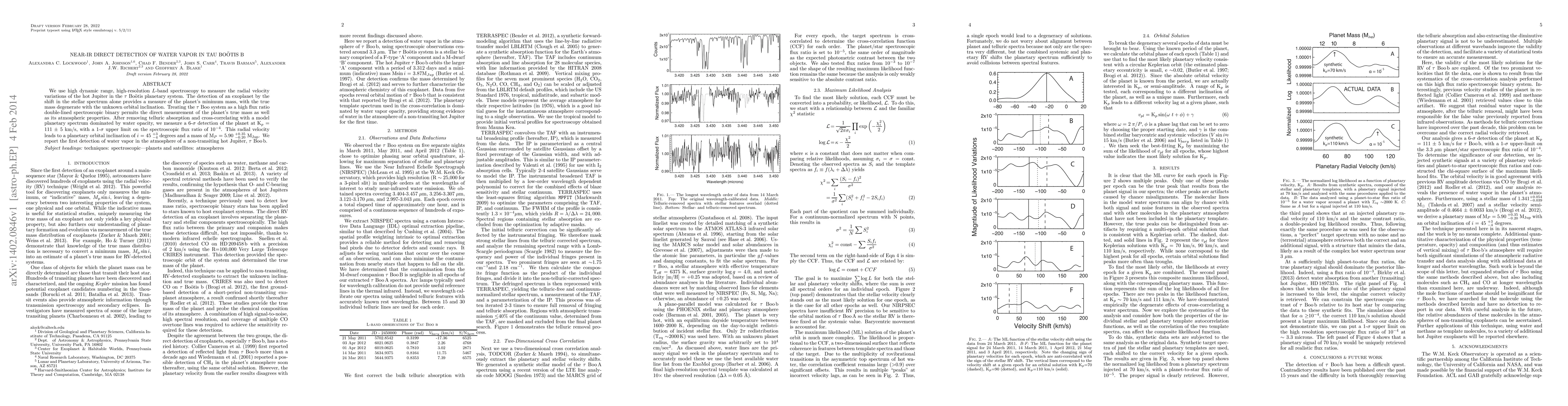 This paper reports the first detection of water vapor in the atmosphere of the hot Jupiter tau Boo b using high-resolution spectroscopy, revealing its radial velocity and mass. The study also measures the planet's true mass and atmospheric properties, confirming the presence of water vapor.