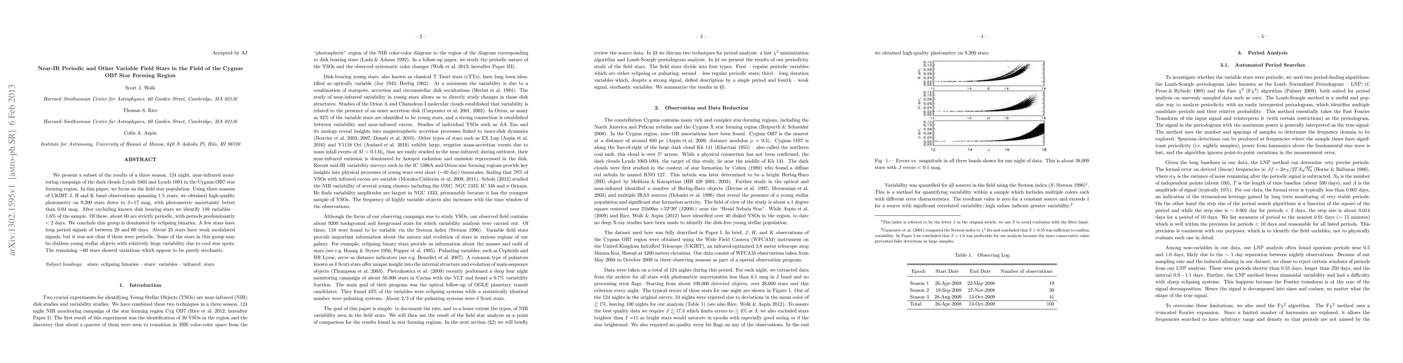 We present a subset of the results of a three season, 124 night, near-infrared monitoring campaign of the dark clouds Lynds 1003 and Lynds 1004 in the Cygnus OB7 star forming region. In this paper, we focus on the field star population. Using three seasons of UKIRT J, H and K band observations spanning 1.5 years, we obtained high-quality photometry on 9,200 stars down to J=17 mag, with photometric uncertainty better than 0.04 mag. After excluding known disk bearing stars we identify 149 variables - 1.6% of the sample. Of these, about 60 are strictly periodic, with periods predominantly < 2 days. We conclude this group is dominated by eclipsing binaries. A few stars have long period signals of between 20 and 60 days. About 25 stars have weak modulated signals, but it was not clear if these were periodic. Some of the stars in this group may be diskless young stellar objects with relatively large variability due to cool star spots. The remaining ~60 stars showed variations which appear to be purely stochastic.