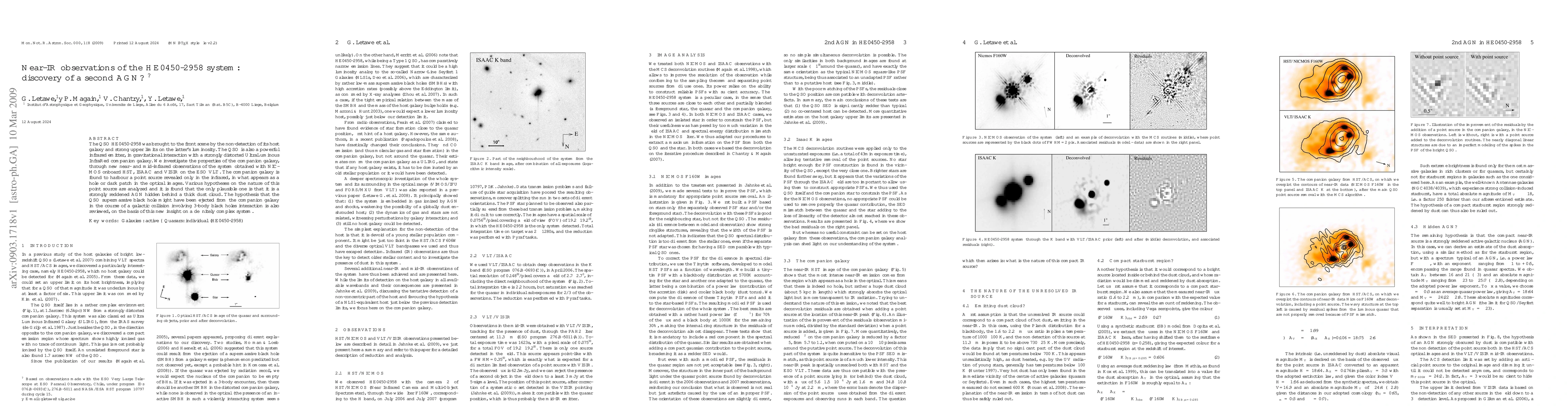 The QSO HE0450-2958 was brought to the front scene by the non-detection of its host galaxy and strong upper limits on the latter's luminosity. The QSO is also a powerful infrared emitter, in gravitational interaction with a strongly distorted UltraLuminous InfraRed companion galaxy. We investigate the properties of the companion galaxy, through new near- and mid-infrared observations of the system obtained with NICMOS onboard HST, ISAAC and VISIR on the ESO VLT. The companion galaxy is found to harbour a point source revealed only in the infrared, in what appears as a hole or dark patch in the optical images. Various hypotheses on the nature of this point source are analyzed and it is found that the only plausible one is that it is a strongly reddened AGN hidden behind a thick dust cloud. The hypothesis that the QSO supermassive black hole might have been ejected from the companion galaxy in the course of a galactic collision involving 3-body black holes interaction is also reviewed, on the basis of this new insight on a definitely complex system.