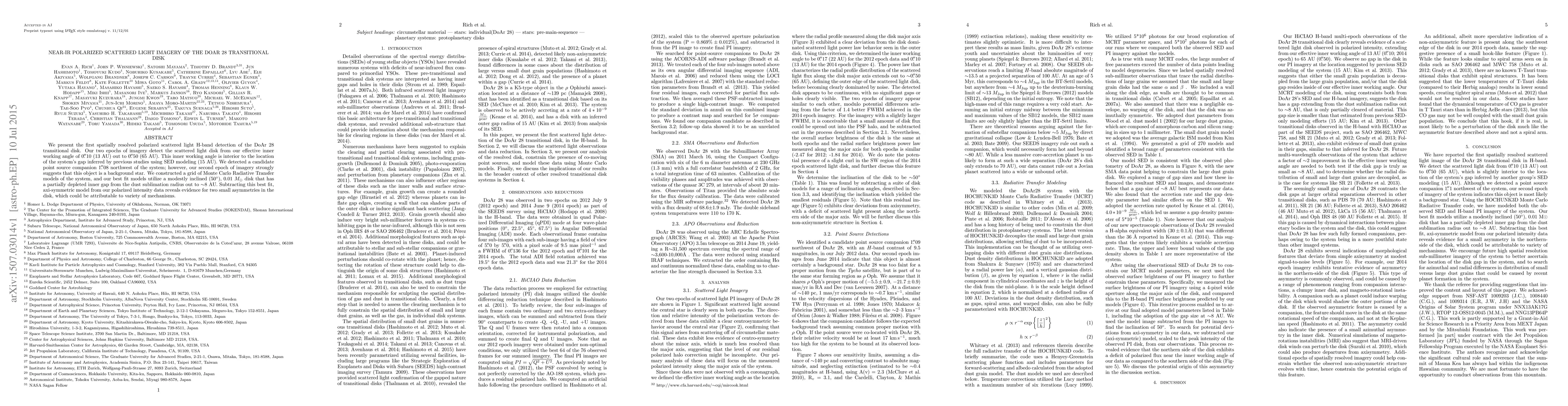 We present the first spatially resolved polarized scattered light H-band detection of the DoAr 28 transitional disk. Our two epochs of imagery detect the scattered light disk from our effective inner working angle of 0.10" (13 AU) out to 0.50" (65 AU). This inner working angle is interior to the location of the system's gap inferred by previous studies using SED modeling (15 AU). We detected a candidate point source companion 1.08" northwest of the system; however, our second epoch of imagery strongly suggests that this object is a background star. We constructed a grid of Monte Carlo Radiative Transfer models of the system, and our best fit models utilize a modestly inclined (50 deg), 0.01 Msun disk that has a partially depleted inner gap from the dust sublimation radius out to ~8 AU. Subtracting this best fit, axi-symmetric model from our polarized intensity data reveals evidence for two small asymmetries in the disk, which could be attributable to variety of mechanisms.