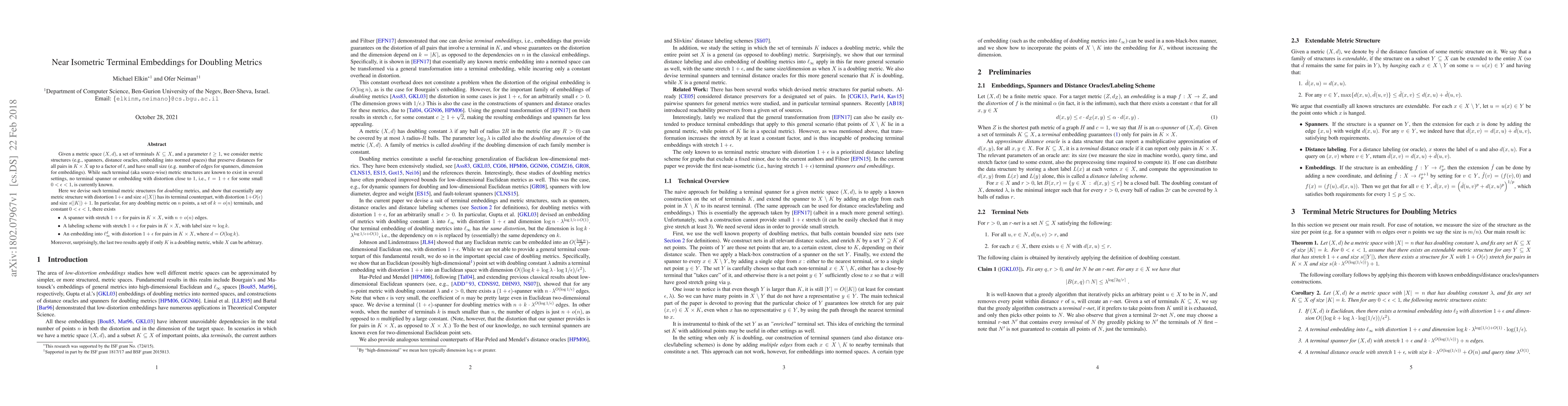 Given a metric space $(X,d)$, a set of terminals $K\subseteq X$, and a parameter $t\ge 1$, we consider metric structures (e.g., spanners, distance oracles, embedding into normed spaces) that preserve distances for all pairs in $K\times X$ up to a factor of $t$, and have small size (e.g. number of edges for spanners, dimension for embeddings). While such terminal (aka source-wise) metric structures are known to exist in several settings, no terminal spanner or embedding with distortion close to 1, i.e., $t=1+\epsilon$ for some small $0<\epsilon<1$, is currently known. Here we devise such terminal metric structures for {\em doubling} metrics, and show that essentially any metric structure with distortion $1+\epsilon$ and size $s(|X|)$ has its terminal counterpart, with distortion $1+O(\epsilon)$ and size $s(|K|)+1$. In particular, for any doubling metric on $n$ points, a set of $k=o(n)$ terminals, and constant $0<\epsilon<1$, there exists: (1) A spanner with stretch $1+\epsilon$ for pairs in $K\times X$, with $n+o(n)$ edges. (2) A labeling scheme with stretch $1+\epsilon$ for pairs in $K\times X$, with label size $\approx \log k$. (3) An embedding into $\ell_\infty^d$ with distortion $1+\epsilon$ for pairs in $K\times X$, where $d=O(\log k)$. Moreover, surprisingly, the last two results apply if only $K$ is a doubling metric, while $X$ can be arbitrary.