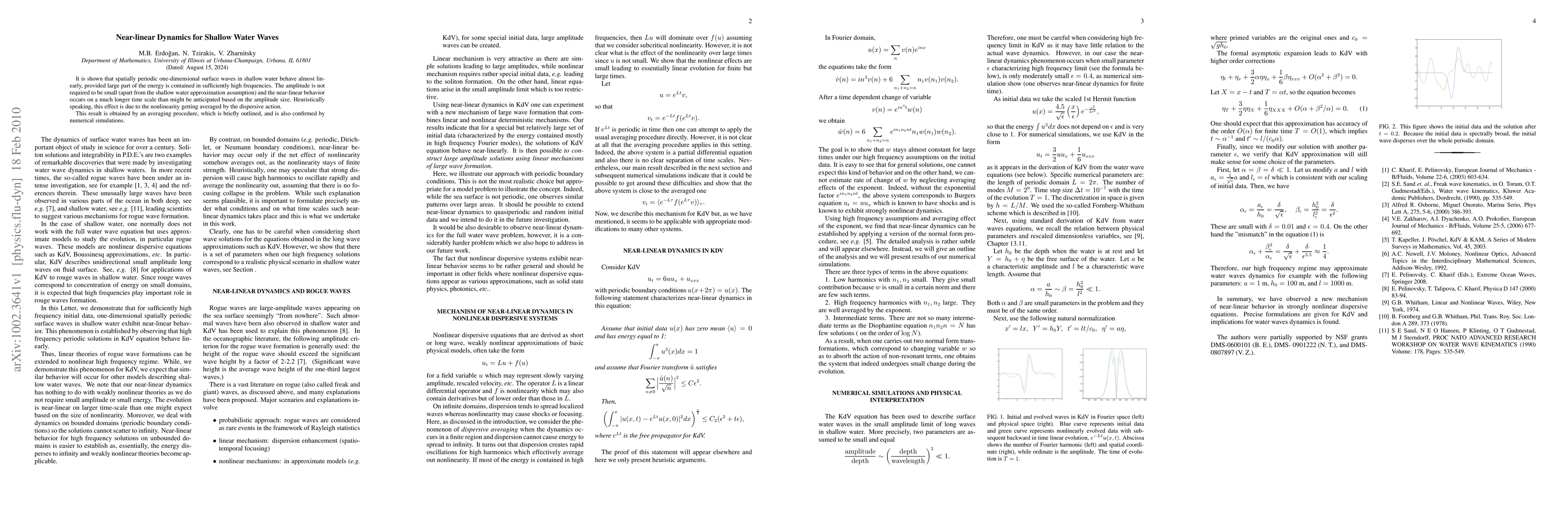 Shallow water waves exhibit near-linear dynamics when most of their energy is in high frequencies, with behavior lasting much longer than expected for small amplitudes.