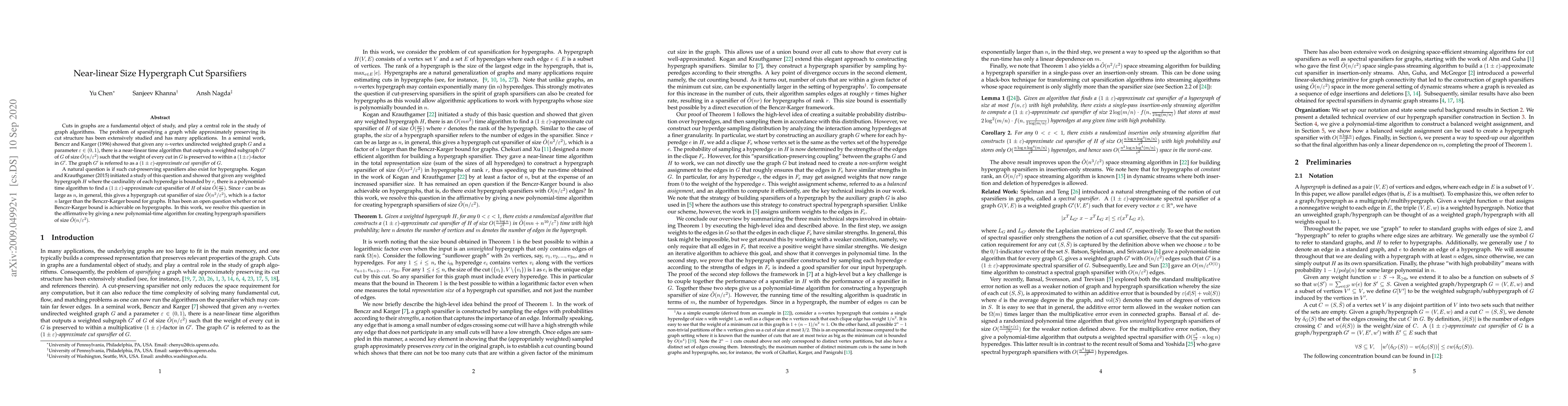 This paper presents a polynomial-time algorithm for constructing a $(1 \pm \varepsilon)$-approximate cut sparsifier of a hypergraph, achieving near-linear size $\tilde{O}(n/\varepsilon^2)$, matching the Benczúr-Karger bound for graphs. This resolves the open question of whether hypergraph cut sparsifiers can match the graph sparsifier size.