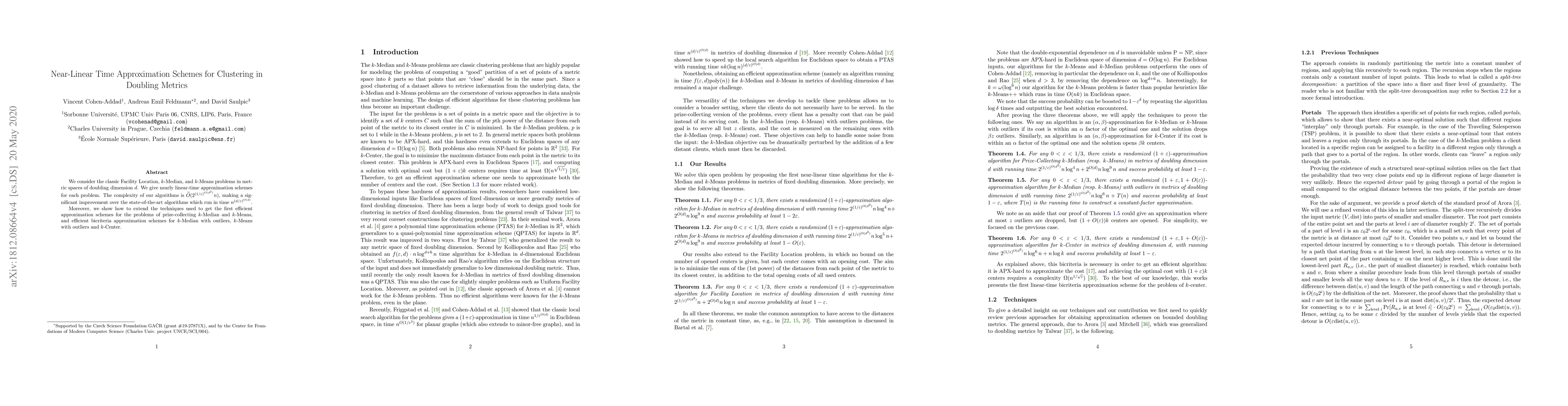 We consider the classic Facility Location, $k$-Median, and $k$-Means problems in metric spaces of doubling dimension $d$. We give nearly linear-time approximation schemes for each problem. The complexity of our algorithms is $2^{(\log(1/\eps)/\eps)^{O(d^2)}} n \log^4 n + 2^{O(d)} n \log^9 n$, making a significant improvement over the state-of-the-art algorithms which run in time $n^{(d/\eps)^{O(d)}}$. Moreover, we show how to extend the techniques used to get the first efficient approximation schemes for the problems of prize-collecting $k$-Medians and $k$-Means, and efficient bicriteria approximation schemes for $k$-Medians with outliers, $k$-Means with outliers and $k$-Center.