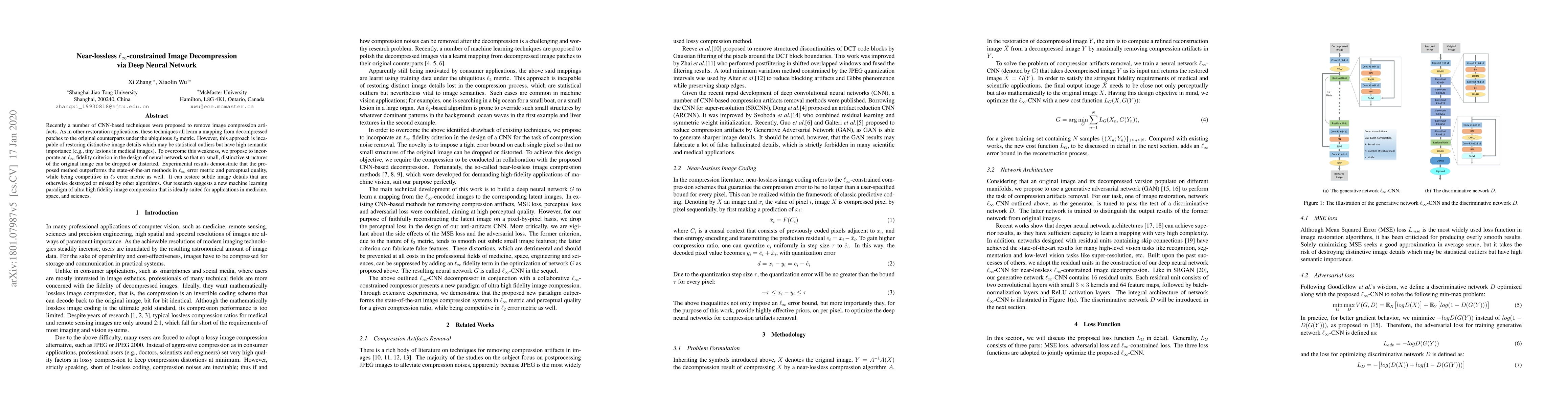 This paper proposes a deep neural network for near-lossless image decompression that incorporates an $\ell_\infty$ fidelity criterion to preserve small, distinctive image details. The method outperforms existing CNN-based techniques in $\ell_\infty$ error and perceptual quality, making it ideal for applications requiring high fidelity, such as medical imaging.