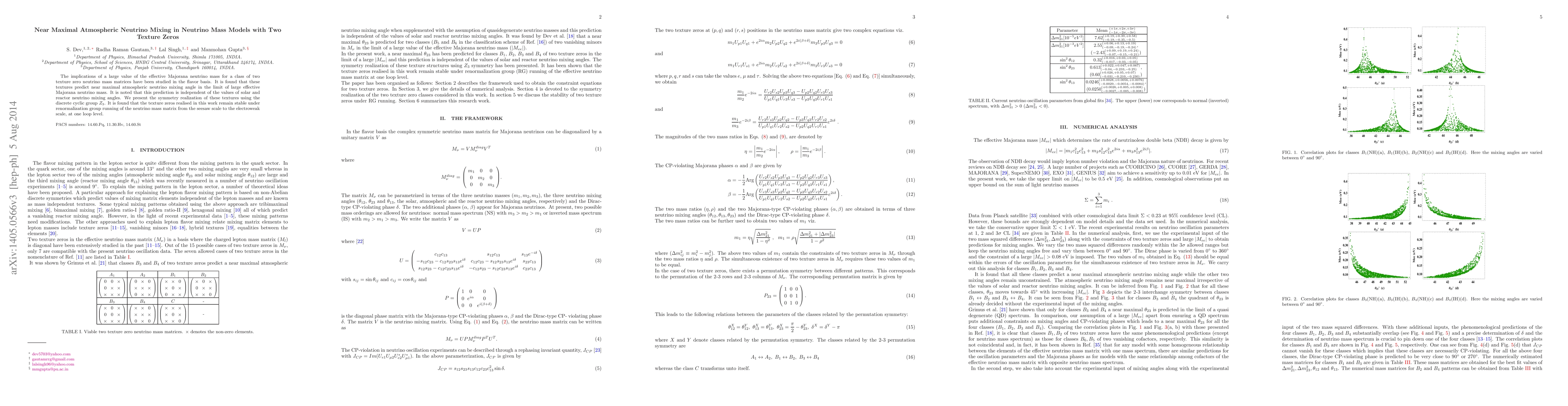 This paper investigates two texture zero neutrino mass matrices, finding they predict near maximal atmospheric neutrino mixing in the large effective Majorana neutrino mass limit. The prediction is independent of solar and reactor neutrino mixing angles and is realized through the symmetry of the discrete cyclic group $Z_3$, which maintains texture zeros under renormalization group running.