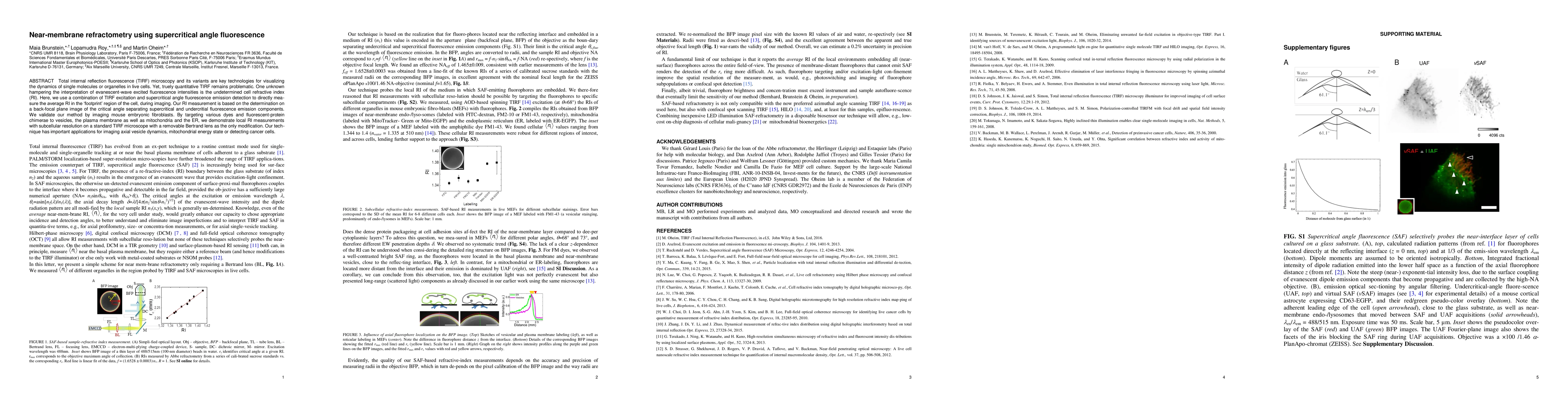 This paper presents a method for near-membrane refractometry using supercritical angle fluorescence combined with TIRF microscopy to measure the average refractive index in the cell's footprint region. The technique, validated on mouse embryonic fibroblasts, allows subcellular resolution refractive index measurements with potential applications in imaging vesicle dynamics and detecting cancer cells.