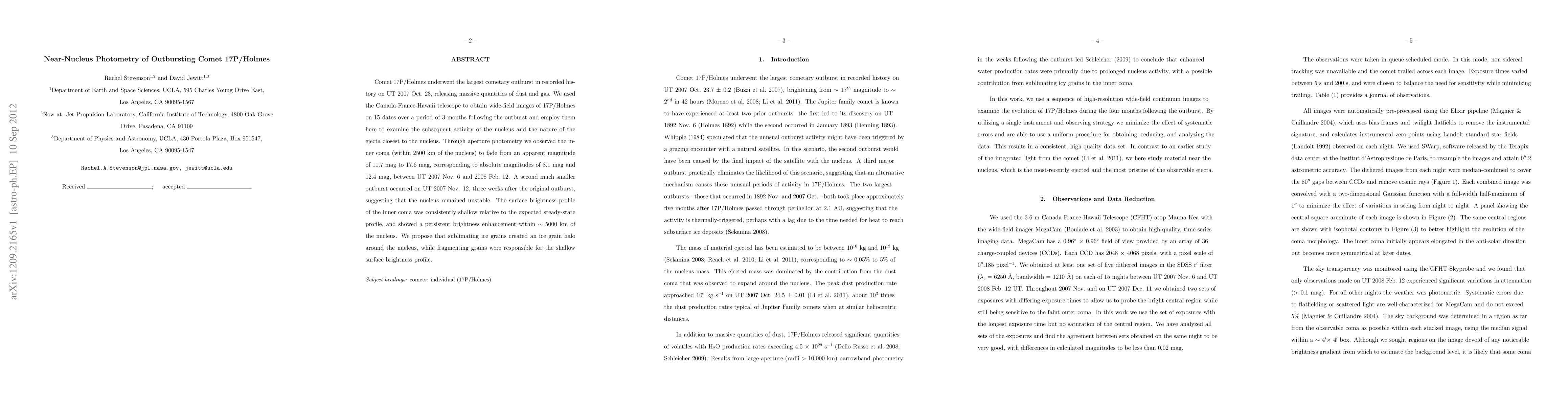 Comet 17P/Holmes underwent a massive outburst in 2007, releasing dust and gas. Sublimating ice grains created an ice grain halo around the nucleus, while fragmenting grains caused a shallow surface brightness profile.