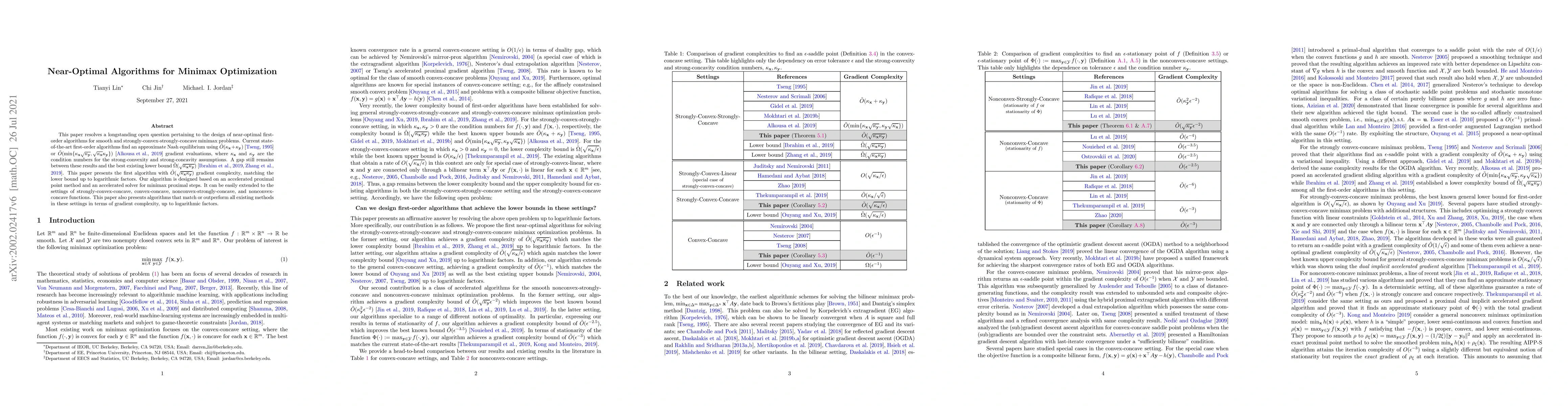 This paper presents a near-optimal algorithm for minimax optimization with $ ilde{O}( ext{square root of product of condition numbers})$ gradient complexity, matching the existing lower bound up to logarithmic factors. The algorithm can be extended to various function settings and improves upon existing methods in those areas.