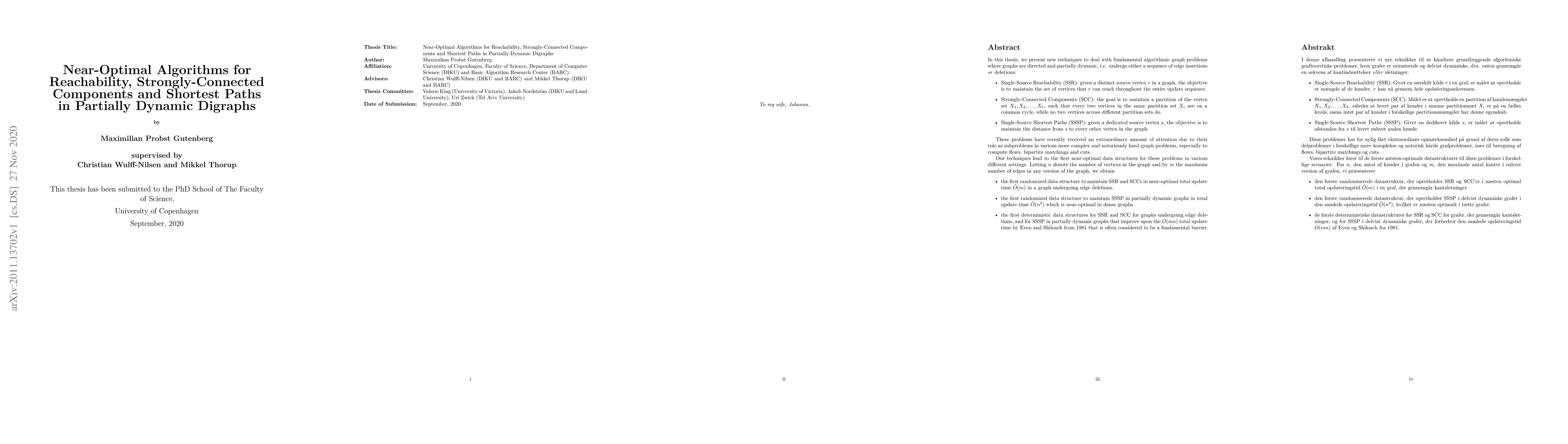 In this thesis, we present new techniques to deal with fundamental algorithmic graph problems where graphs are directed and partially dynamic, i.e. undergo either a sequence of edge insertions or deletions: - Single-Source Reachability (SSR), - Strongly-Connected Components (SCCs), and - Single-Source Shortest Paths (SSSP). These problems have recently received an extraordinary amount of attention due to their role as subproblems in various more complex and notoriously hard graph problems, especially to compute flows, bipartite matchings and cuts. Our techniques lead to the first near-optimal data structures for these problems in various different settings. Letting $n$ denote the number of vertices in the graph and by $m$ the maximum number of edges in any version of the graph, we obtain - the first randomized data structure to maintain SSR and SCCs in near-optimal total update time $\tilde{O}(m)$ in a graph undergoing edge deletions. - the first randomized data structure to maintain SSSP in partially dynamic graphs in total update time $\tilde{O}(n^2)$ which is near-optimal in dense graphs. - the first deterministic data structures for SSR and SCC for graphs undergoing edge deletions, and for SSSP in partially dynamic graphs that improve upon the $O(mn)$ total update time by Even and Shiloach from 1981 that is often considered to be a fundamental barrier.