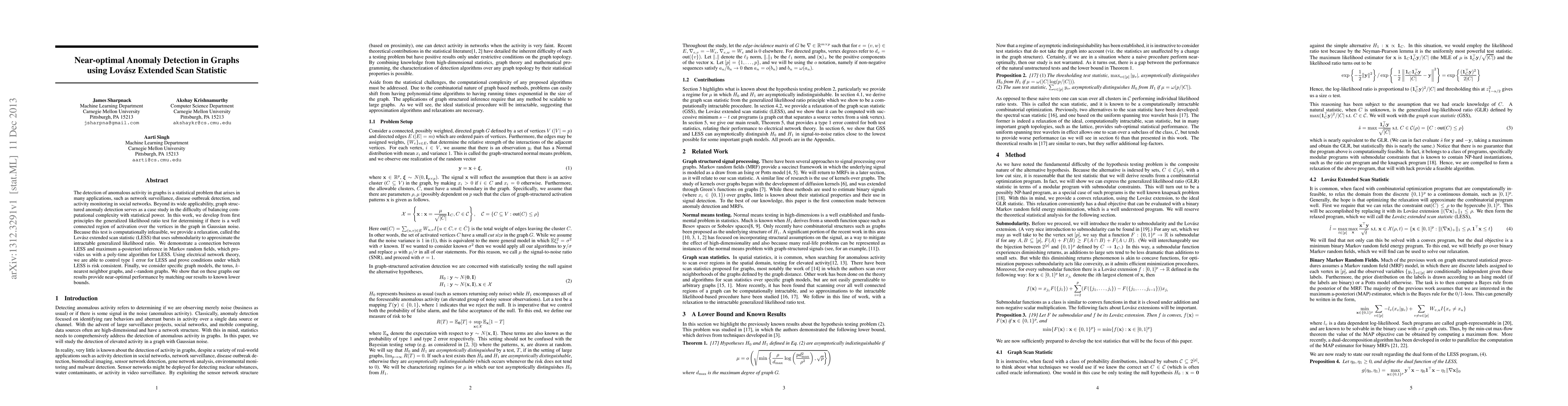 This paper develops a computationally efficient method, the Lovasz extended scan statistic (LESS), for detecting anomalous activity in graph structures under Gaussian noise. It provides a poly-time algorithm for LESS, controls type 1 error, and demonstrates its near-optimal performance on various graph models.