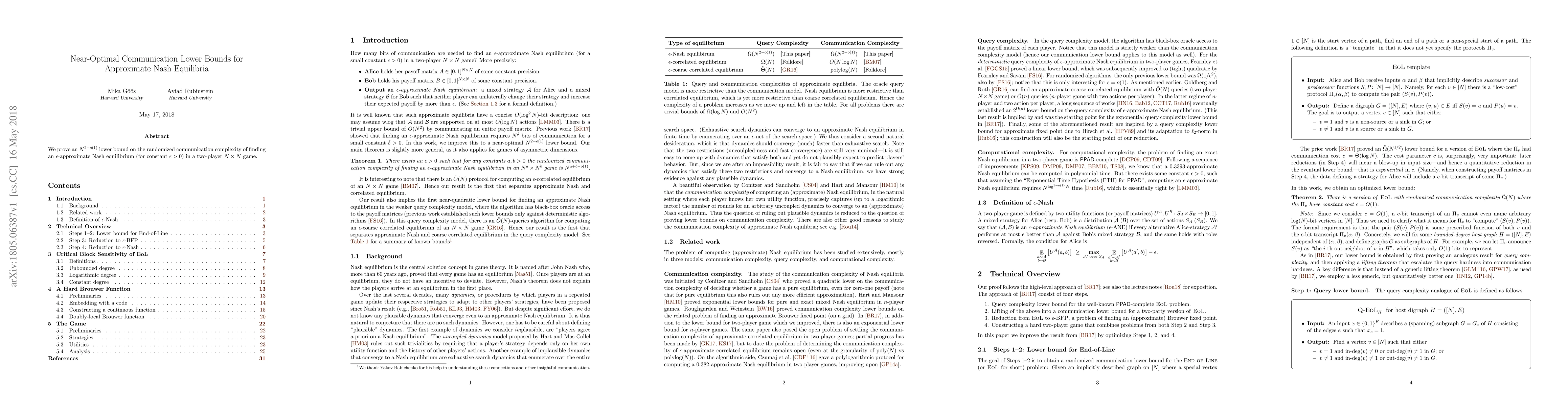 Summary: This paper establishes a near-optimal lower bound of $N^{2-o(1)}$ for the randomized communication complexity required to find an $\epsilon$-approximate Nash equilibrium in a two-player $N \times N$ game, demonstrating significant constraints on the efficiency of such computations.