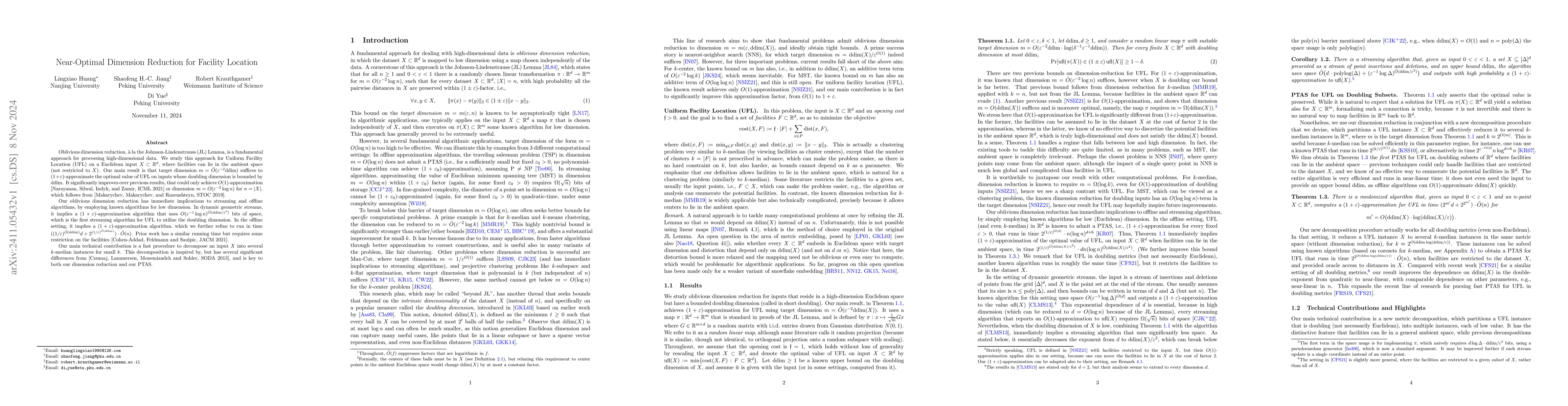 This paper proposes an oblivious dimension reduction technique for Uniform Facility Location (UFL) on Euclidean data, achieving a target dimension of $m=\tilde{O}(\epsilon^{-2}\mathrm{ddim})$ for $(1+\epsilon)$-approximation. It significantly improves upon previous results by leveraging the doubling dimension, with implications for both streaming and offline algorithms.