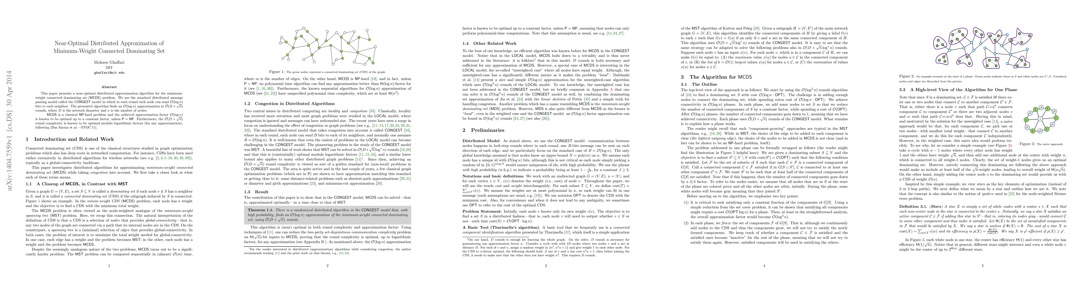 Researchers developed a near-optimal algorithm to solve the minimum-weight connected dominating set problem in distributed networks, achieving an approximation factor of O(log n) in tilde(O(D + sqrt(n))) rounds.