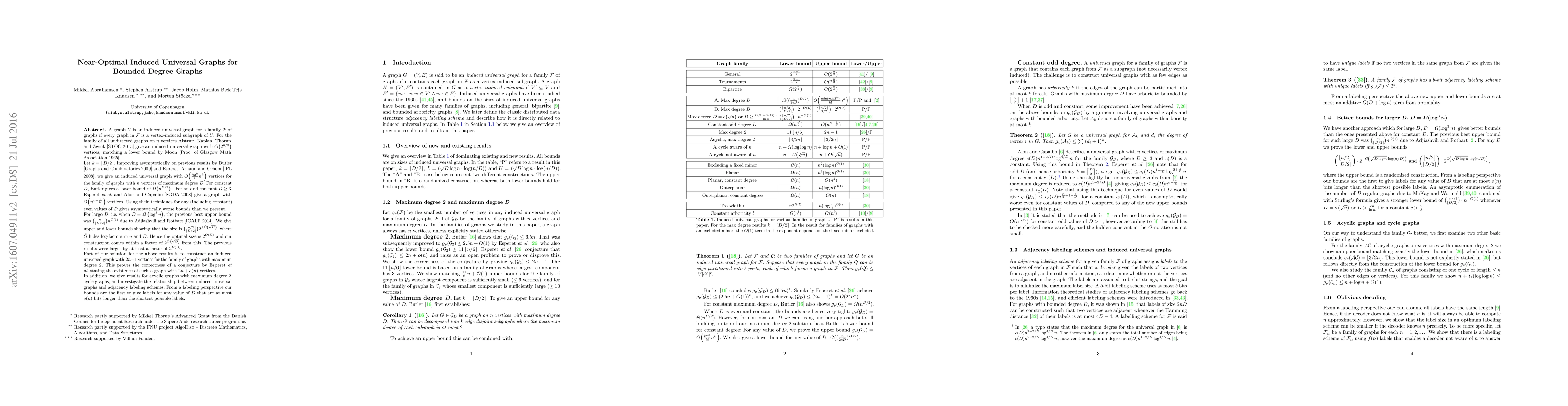 A graph $U$ is an induced universal graph for a family $F$ of graphs if every graph in $F$ is a vertex-induced subgraph of $U$. For the family of all undirected graphs on $n$ vertices Alstrup, Kaplan, Thorup, and Zwick [STOC 2015] give an induced universal graph with $O\!\left(2^{n/2}\right)$ vertices, matching a lower bound by Moon [Proc. Glasgow Math. Assoc. 1965]. Let $k= \lceil D/2 \rceil$. Improving asymptotically on previous results by Butler [Graphs and Combinatorics 2009] and Esperet, Arnaud and Ochem [IPL 2008], we give an induced universal graph with $O\!\left(\frac{k2^k}{k!}n^k \right)$ vertices for the family of graphs with $n$ vertices of maximum degree $D$. For constant $D$, Butler gives a lower bound of $\Omega\!\left(n^{D/2}\right)$. For an odd constant $D\geq 3$, Esperet et al. and Alon and Capalbo [SODA 2008] give a graph with $O\!\left(n^{k-\frac{1}{D}}\right)$ vertices. Using their techniques for any (including constant) even values of $D$ gives asymptotically worse bounds than we present. For large $D$, i.e. when $D = \Omega\left(\log^3 n\right)$, the previous best upper bound was ${n\choose\lceil D/2\rceil} n^{O(1)}$ due to Adjiashvili and Rotbart [ICALP 2014]. We give upper and lower bounds showing that the size is ${\lfloor n/2\rfloor\choose\lfloor D/2 \rfloor}2^{\pm\tilde{O}\left(\sqrt{D}\right)}$. Hence the optimal size is $2^{\tilde{O}(D)}$ and our construction is within a factor of $2^{\tilde{O}\left(\sqrt{D}\right)}$ from this. The previous results were larger by at least a factor of $2^{\Omega(D)}$. As a part of the above, proving a conjecture by Esperet et al., we construct an induced universal graph with $2n-1$ vertices for the family of graphs with max degree $2$. In addition, we give results for acyclic graphs with max degree $2$ and cycle graphs. Our results imply the first labeling schemes that for any $D$ are at most $o(n)$ bits from optimal.