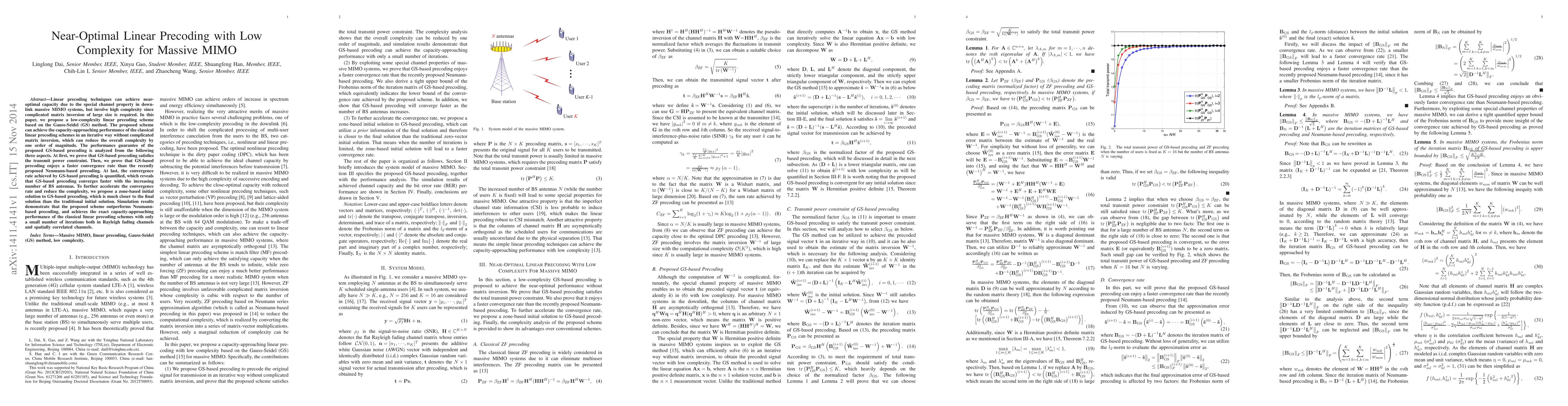 This paper proposes a low-complexity linear precoding scheme for massive MIMO systems using the Gauss-Seidel method, which achieves near-optimal capacity performance without requiring complex matrix inversion. The scheme converges faster than Neumann-based precoding and is shown to perform well in both Rayleigh and correlated channels.