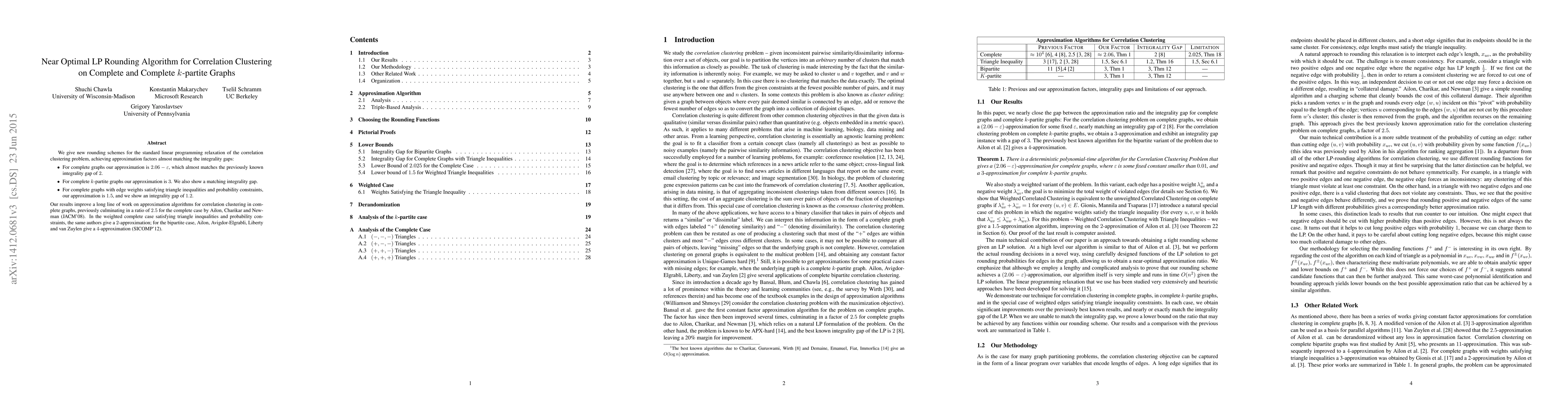 We give new rounding schemes for the standard linear programming relaxation of the correlation clustering problem, achieving approximation factors almost matching the integrality gaps: - For complete graphs our appoximation is $2.06 - \varepsilon$ for a fixed constant $\varepsilon$, which almost matches the previously known integrality gap of $2$. - For complete $k$-partite graphs our approximation is $3$. We also show a matching integrality gap. - For complete graphs with edge weights satisfying triangle inequalities and probability constraints, our approximation is $1.5$, and we show an integrality gap of $1.2$. Our results improve a long line of work on approximation algorithms for correlation clustering in complete graphs, previously culminating in a ratio of $2.5$ for the complete case by Ailon, Charikar and Newman (JACM'08). In the weighted complete case satisfying triangle inequalities and probability constraints, the same authors give a $2$-approximation; for the bipartite case, Ailon, Avigdor-Elgrabli, Liberty and van Zuylen give a $4$-approximation (SICOMP'12).