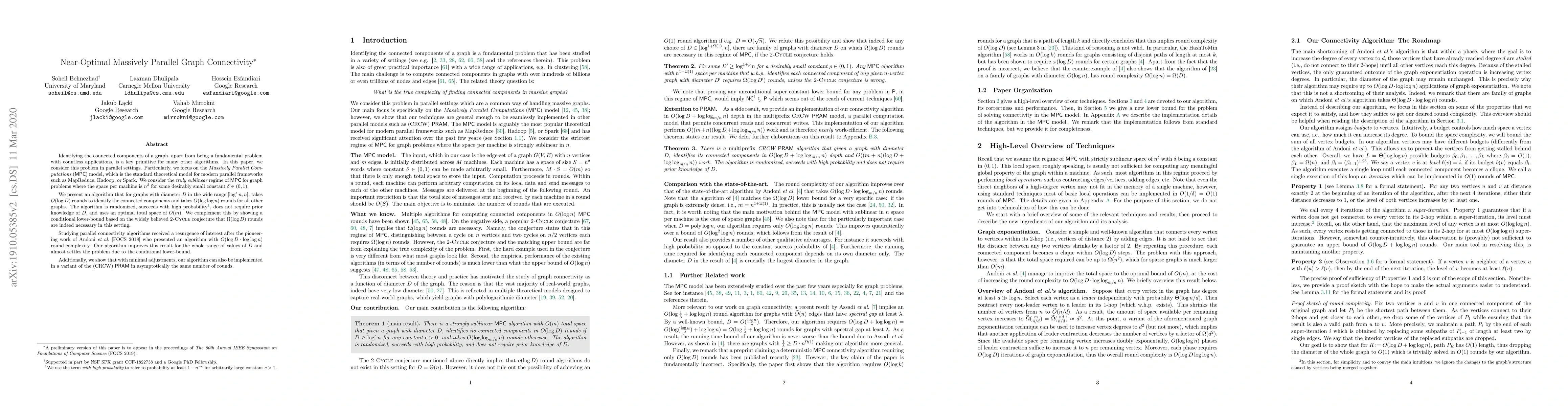 This paper presents an efficient algorithm for identifying connected components in graphs within the Massively Parallel Computations (MPC) model, achieving near-optimal round complexity of $O(\log D)$ for graphs with diameter $D$ in the range $[\log^{\epsilon} n, n]$, and $O(\log \log n)$ for others. The algorithm uses optimal total space and does not require prior knowledge of $D$, while also presenting a conditional lower-bound suggesting $\Omega(\log D)$ rounds are necessary.