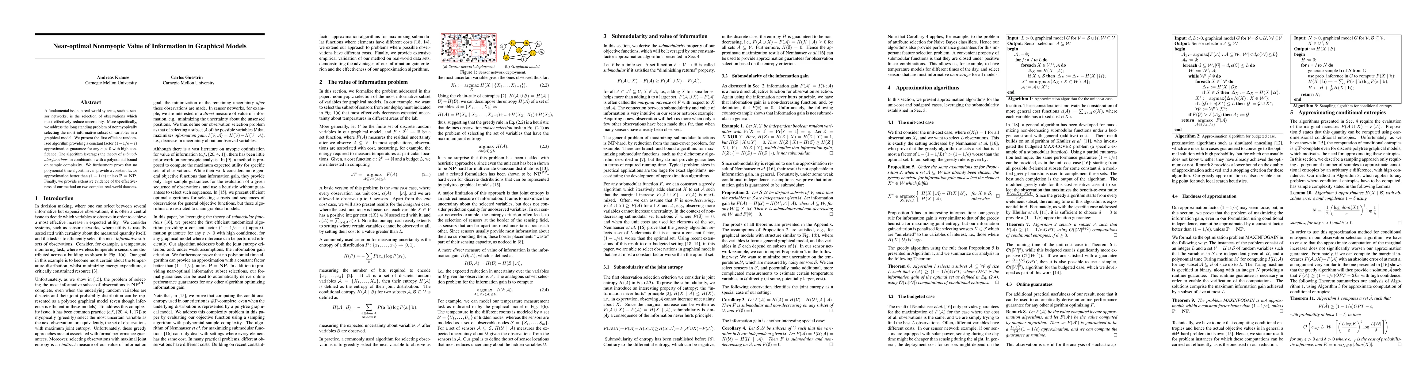A fundamental issue in real-world systems, such as sensor networks, is the selection of observations which most effectively reduce uncertainty. More specifically, we address the long standing problem of nonmyopically selecting the most informative subset of variables in a graphical model. We present the first efficient randomized algorithm providing a constant factor (1-1/e-epsilon) approximation guarantee for any epsilon > 0 with high confidence. The algorithm leverages the theory of submodular functions, in combination with a polynomial bound on sample complexity. We furthermore prove that no polynomial time algorithm can provide a constant factor approximation better than (1 - 1/e) unless P = NP. Finally, we provide extensive evidence of the effectiveness of our method on two complex real-world datasets.