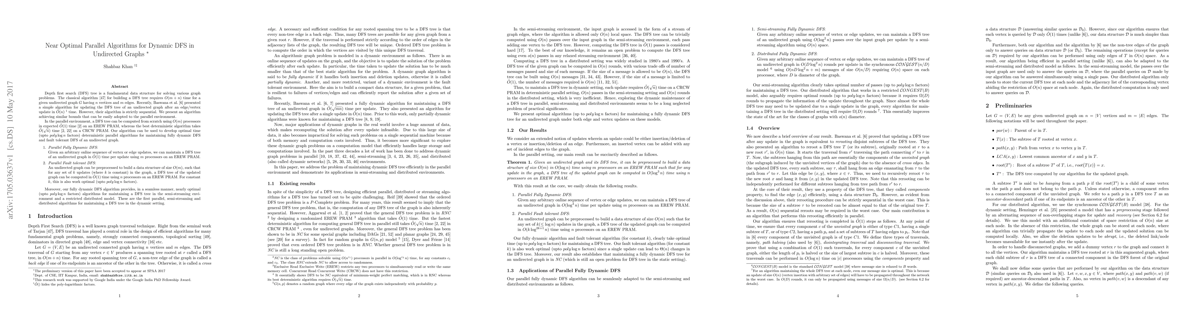 Depth first search (DFS) tree is a fundamental data structure for solving graph problems. The classical algorithm [SiComp74] for building a DFS tree requires $O(m+n)$ time for a given graph $G$ having $n$ vertices and $m$ edges. Recently, Baswana et al. [SODA16] presented a simple algorithm for updating DFS tree of an undirected graph after an edge/vertex update in $\tilde{O}(n)$ time. However, their algorithm is strictly sequential. We present an algorithm achieving similar bounds, that can be adopted easily to the parallel environment. In the parallel model, a DFS tree can be computed from scratch using $m$ processors in expected $\tilde{O}(1)$ time [SiComp90] on an EREW PRAM, whereas the best deterministic algorithm takes $\tilde{O}(\sqrt{n})$ time [SiComp90,JAlg93] on a CRCW PRAM. Our algorithm can be used to develop optimal (upto polylog n factors deterministic algorithms for maintaining fully dynamic DFS and fault tolerant DFS, of an undirected graph. 1- Parallel Fully Dynamic DFS: Given an arbitrary online sequence of vertex/edge updates, we can maintain a DFS tree of an undirected graph in $\tilde{O}(1)$ time per update using $m$ processors on an EREW PRAM. 2- Parallel Fault tolerant DFS: An undirected graph can be preprocessed to build a data structure of size O(m) such that for a set of $k$ updates (where $k$ is constant) in the graph, the updated DFS tree can be computed in $\tilde{O}(1)$ time using $n$ processors on an EREW PRAM. Moreover, our fully dynamic DFS algorithm provides, in a seamless manner, nearly optimal (upto polylog n factors) algorithms for maintaining a DFS tree in semi-streaming model and a restricted distributed model. These are the first parallel, semi-streaming and distributed algorithms for maintaining a DFS tree in the dynamic setting.