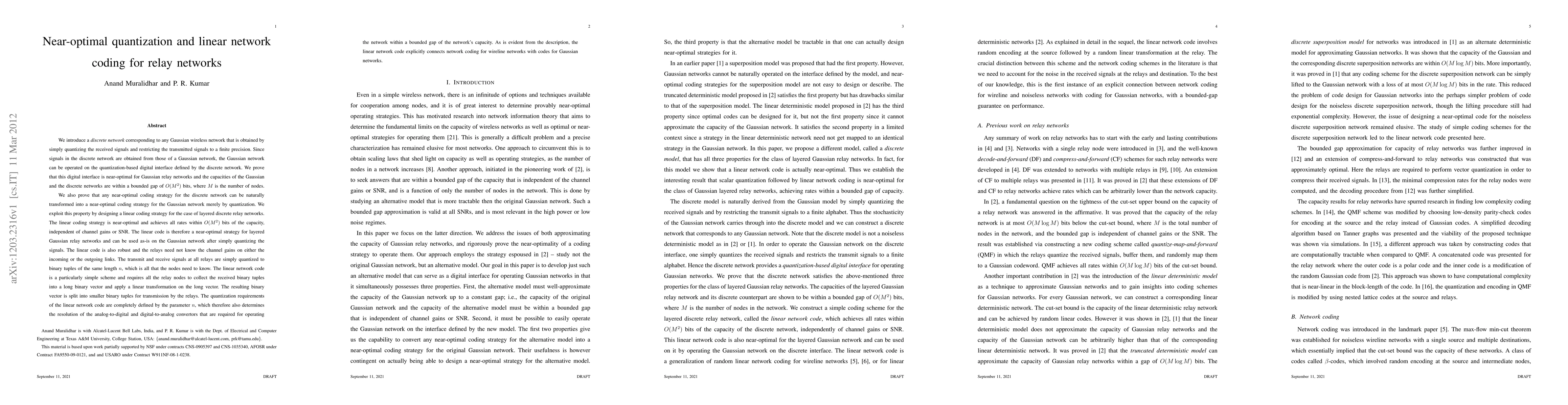 This paper presents a near-optimal quantization and linear network coding strategy for Gaussian relay networks, demonstrating that the discrete network's digital interface is nearly optimal with a bounded gap of O(M^2) bits. The proposed linear coding strategy achieves near-optimal rates for both Gaussian and discrete networks, requiring only binary quantization and linear transformations at relay nodes.